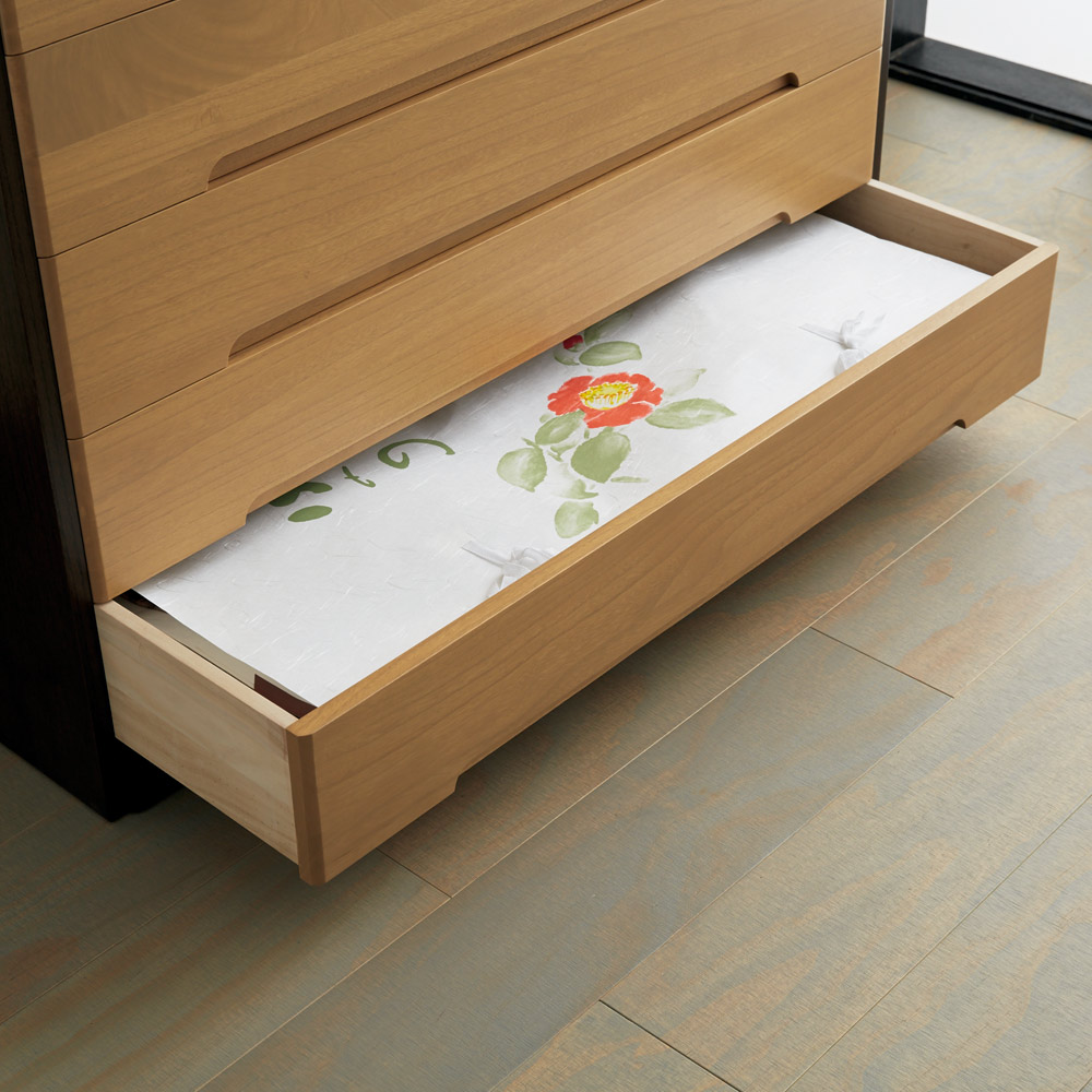 ●引き出し内部も総桐仕様で衣類収納にもぴったり。ウール等の天然素材の収納としてもおすすめです●内寸幅も93.5cmあるので、大判のたとう紙も折らずに収納できます。大切な着物の特等席に