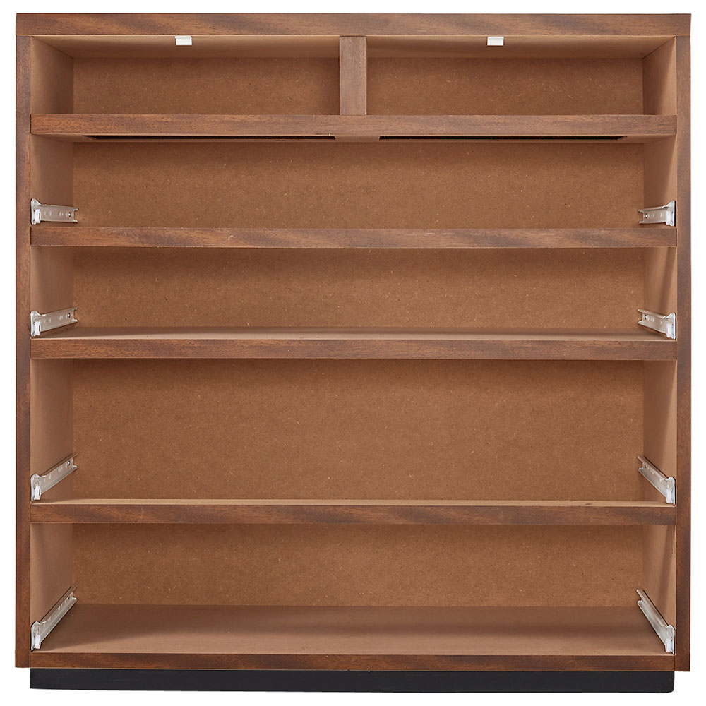 ●チェストの端から端まで広がる横格子デザインは視覚的にお部屋を幅広に感じさせ、ダークブラウンの色合いが落ち着きを与えてくれます。