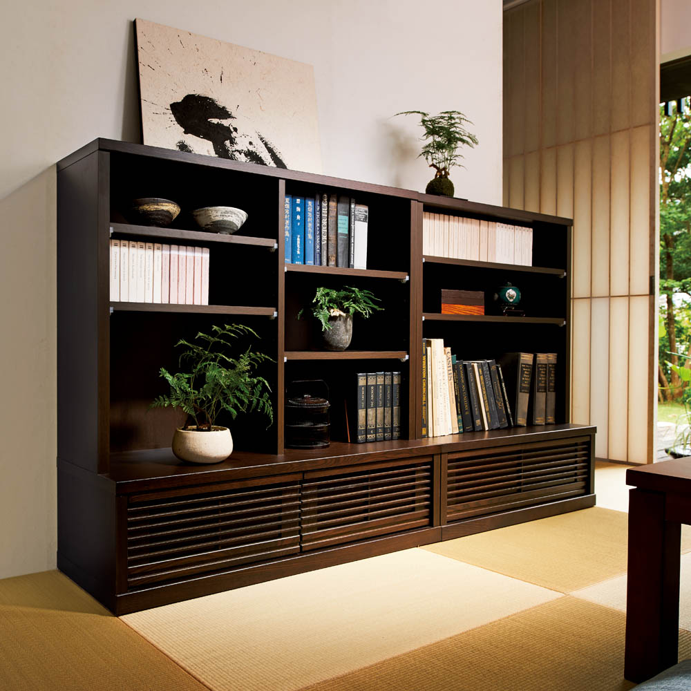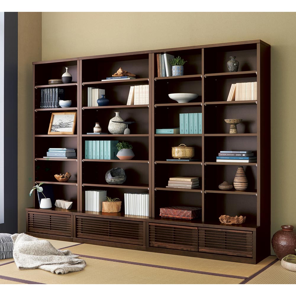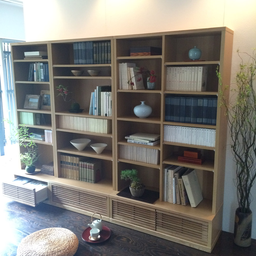 棚収納と引き出しが両方備わった、機能性の高い本棚です。