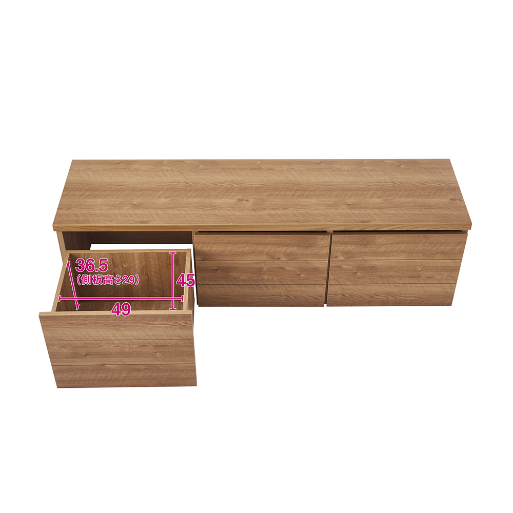 使用イメージ(ア)ブラウン 天板耐荷重約150kg。リビングではテレビ台としてもお使いいただけます。 ※写真は別売りの4連・幅159cm奥行40cm高さ44cmタイプです。