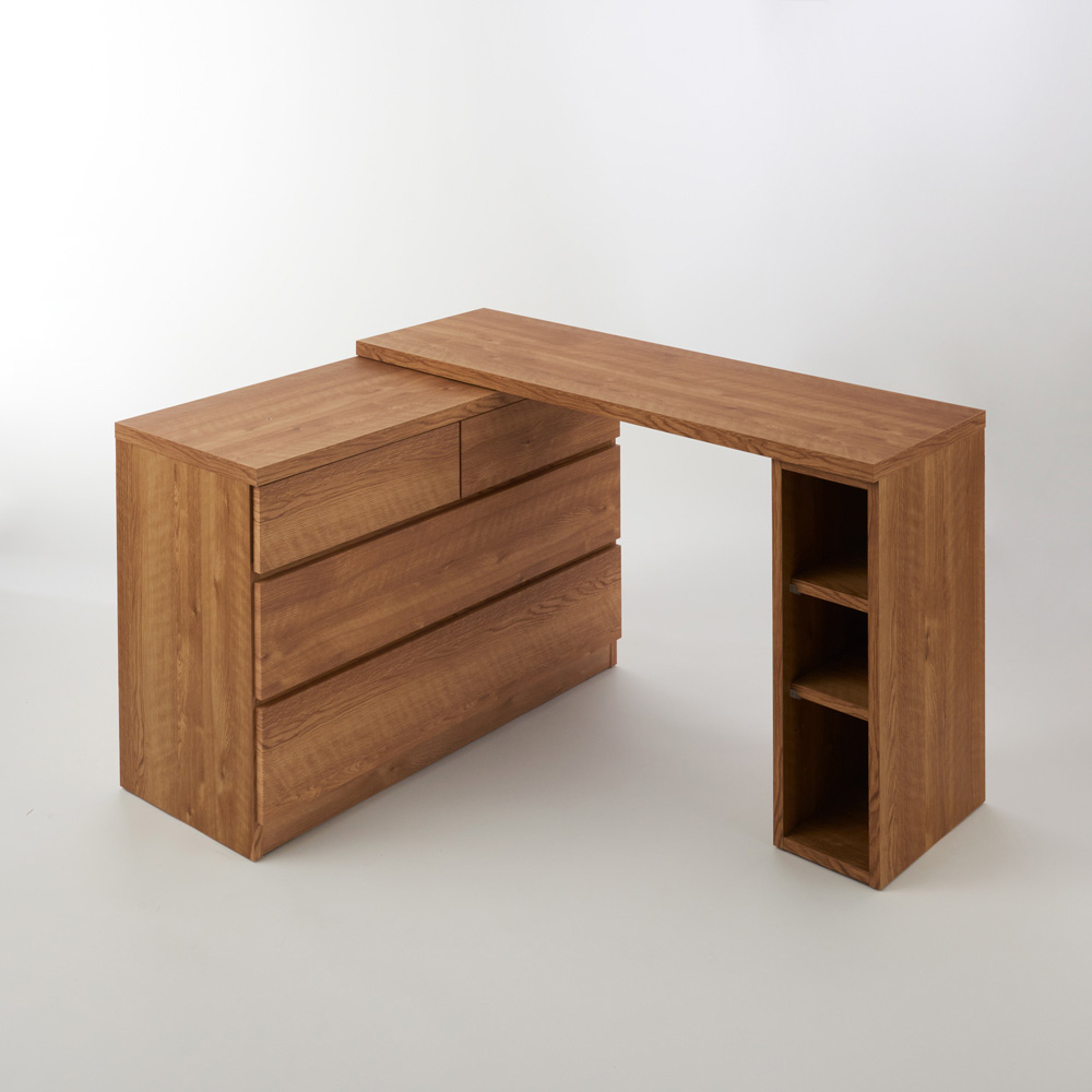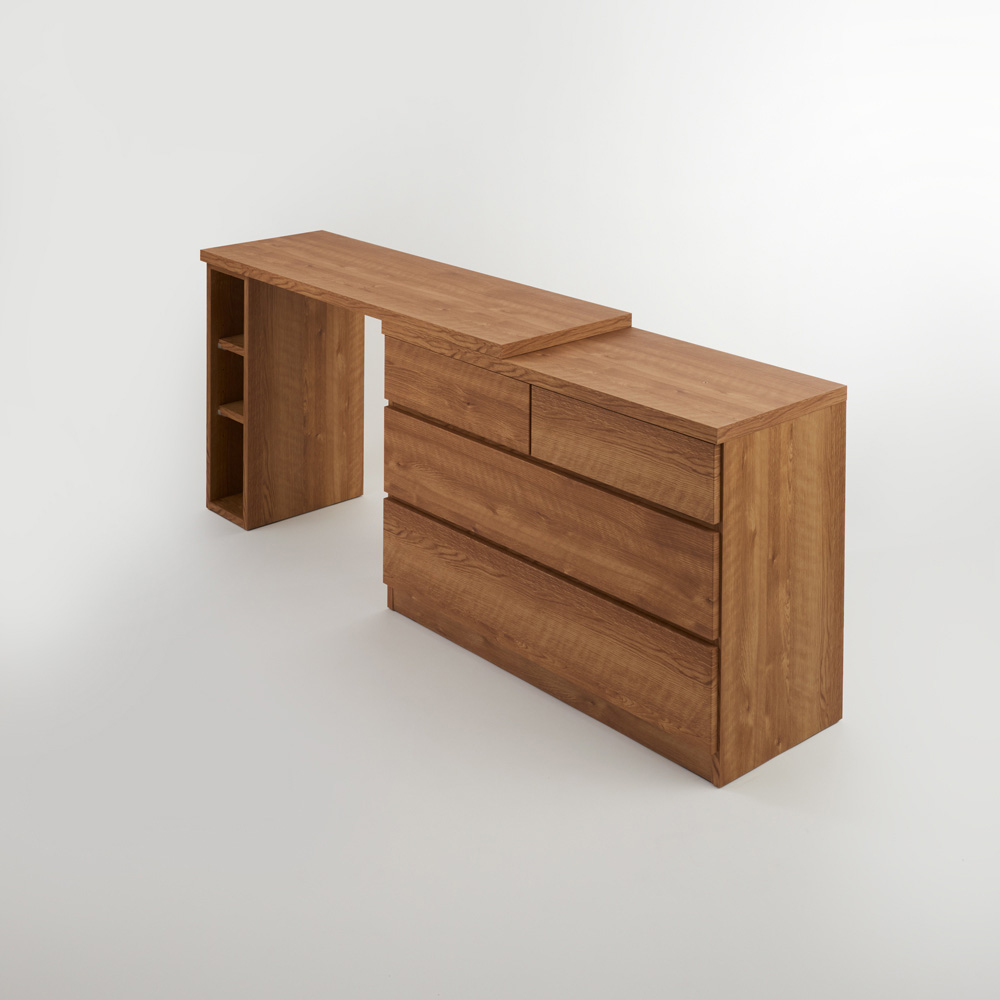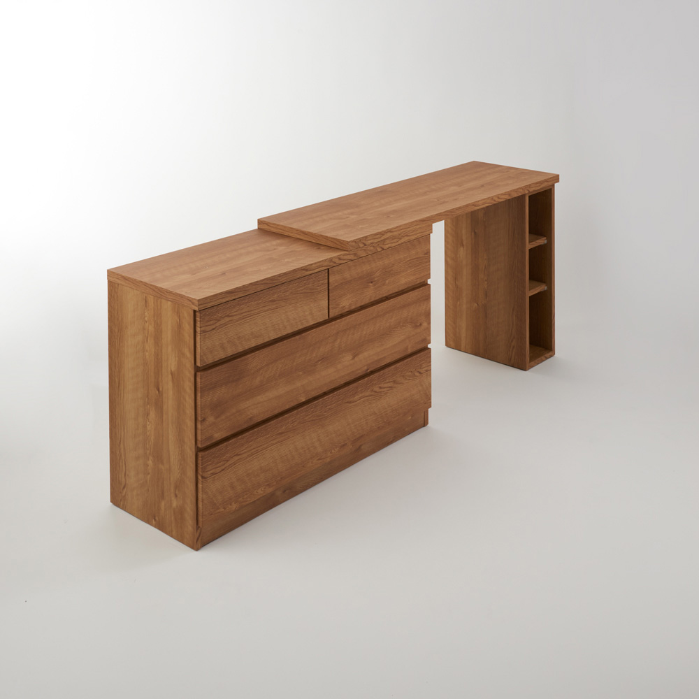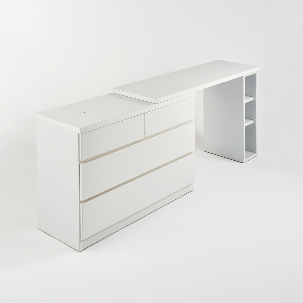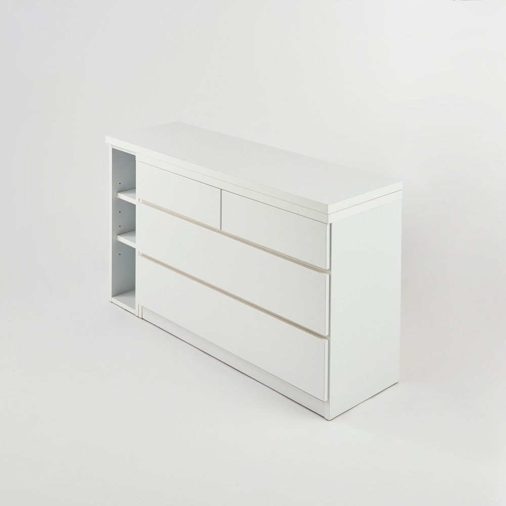 (ア)ホワイト 【天板伸縮時】普段はチェスト、必要なときだけ天板を広げてデスクとして使うことができます。