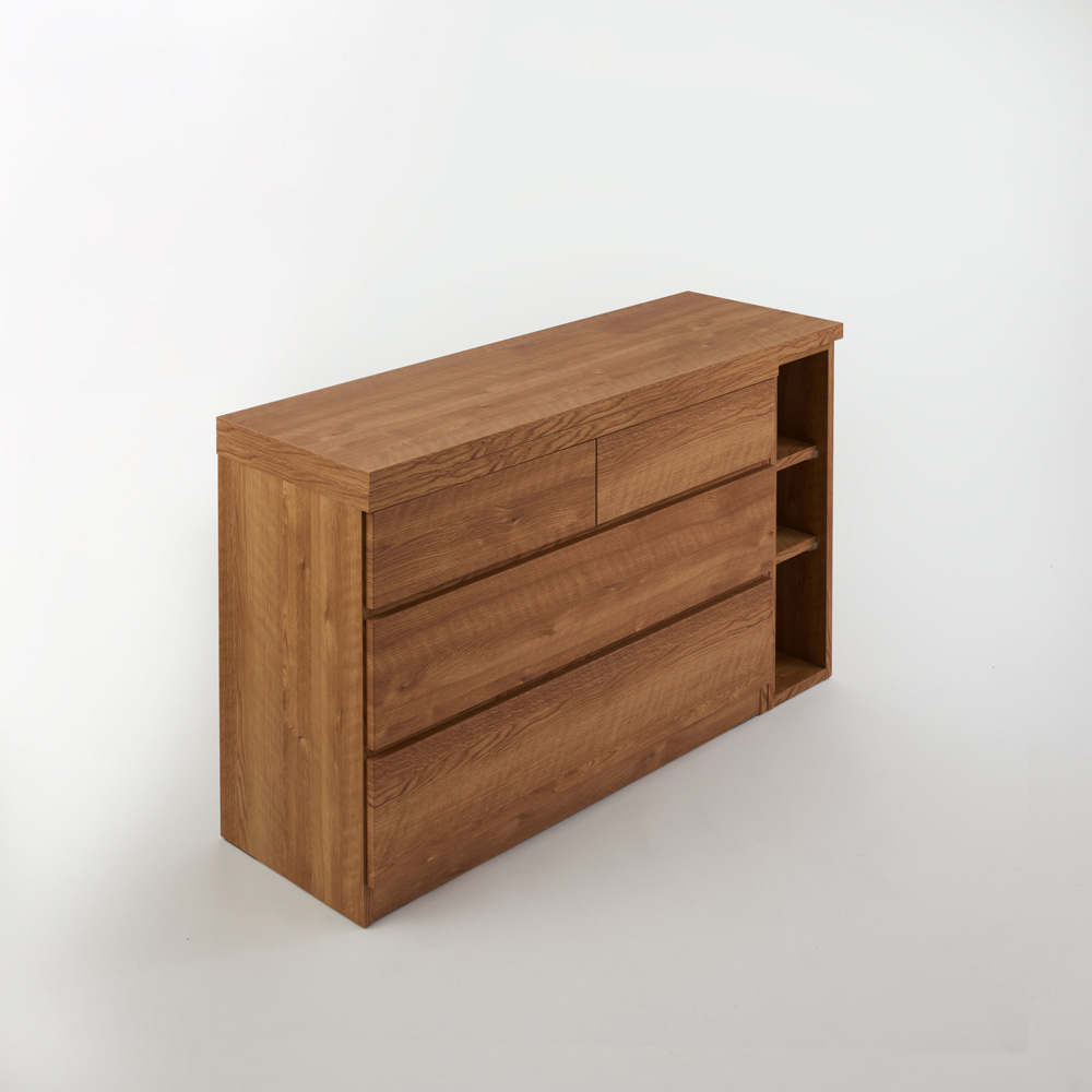 ●チェストは小引き出し2杯、大引き出し2杯付き。●たたんだ服や下着類など、クローゼットに収まりきらない衣類の収納に便利です。