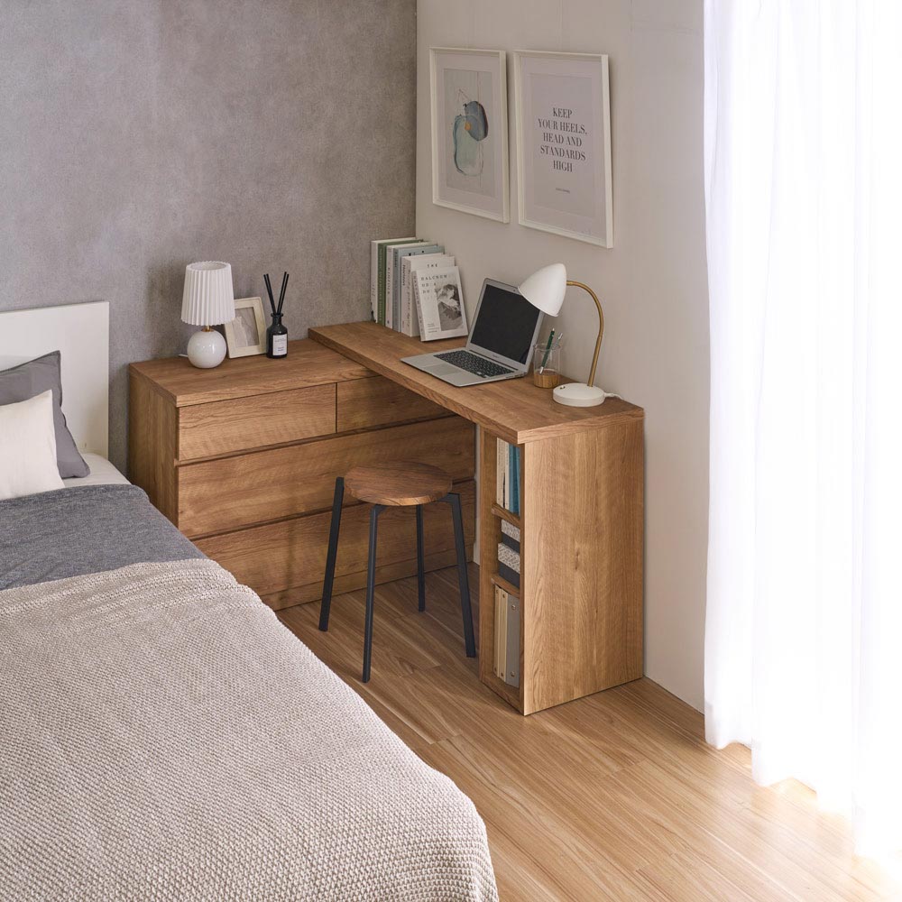 (イ)ライトブラウン デスクとチェストを別々に置けない狭い場所におすすめ。 ※写真はお届けする商品です。