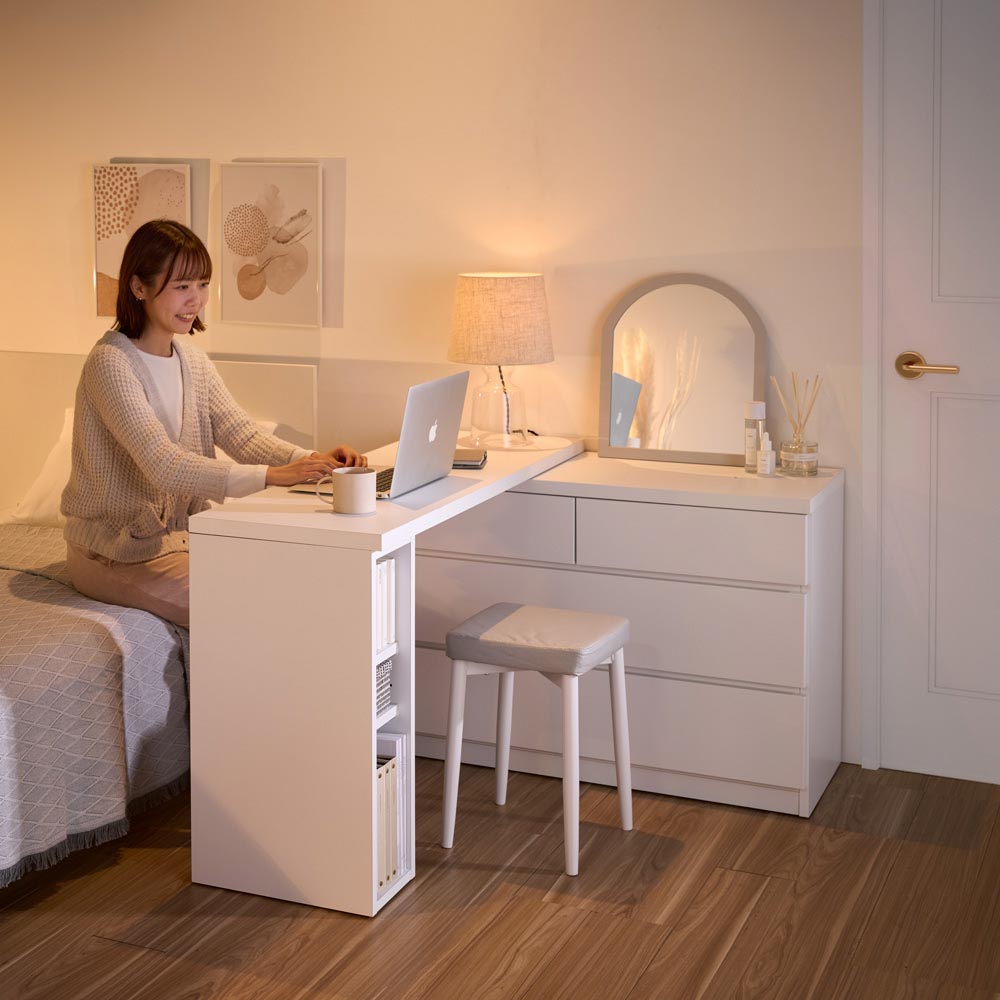(ア)ホワイト デスクとチェストの1台2役。模様替えもお手軽に。在宅勤務やテレワークにも最適です。 ※写真はお届けする商品です。