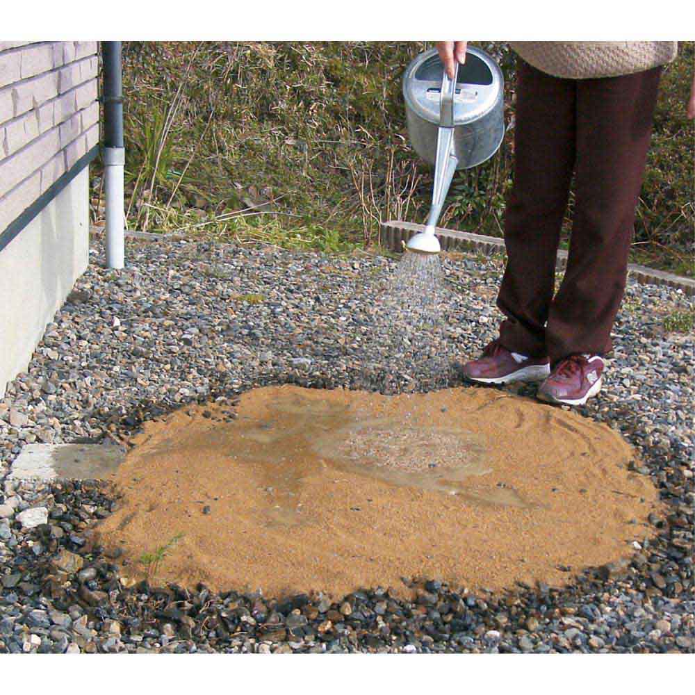 地面に敷き詰めて、水をかけるだけで固まる「カチカチ君」は、手軽にできる雑草防止策としておすすめ。雑草が気になる場所に敷き詰め、水をまくだけで固まり、雑草が生えにくい土壌に。自然な土のような色に仕上がります。