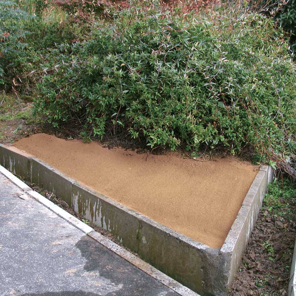 地面に均等に敷き詰め、水をかけるだけで固まります。
