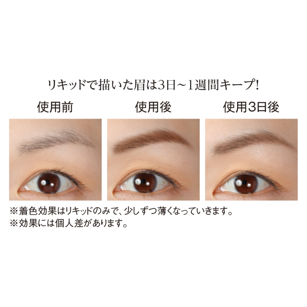 夜にリキッドで眉を描くと、寝ている間の5~6時間で色が定着(セルフタンニング)。洗顔しても落ちにくいので朝はペンシルで整えるだけ!朝のメイクが劇的に簡単に!汗や皮脂にも強く美しい眉が持続します。