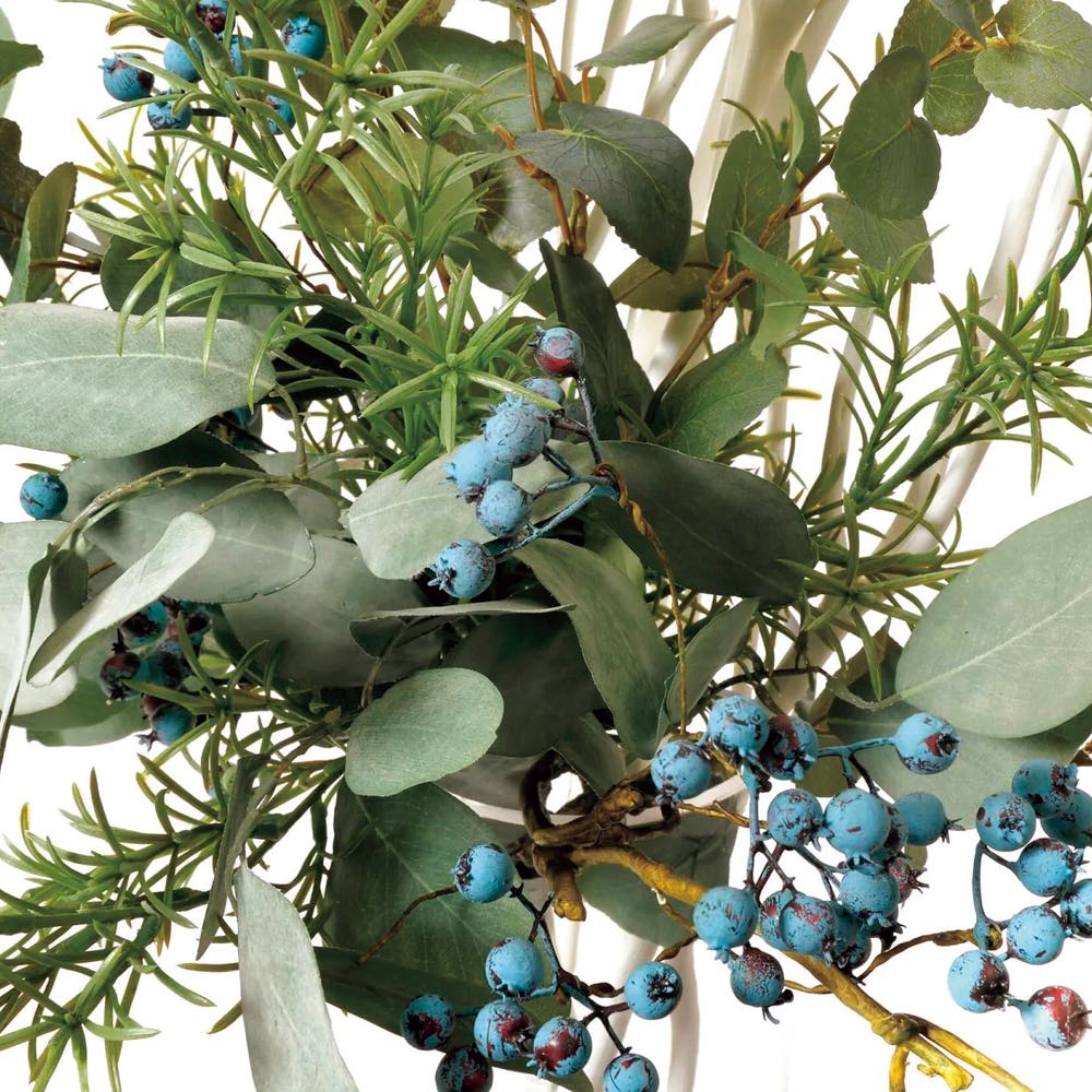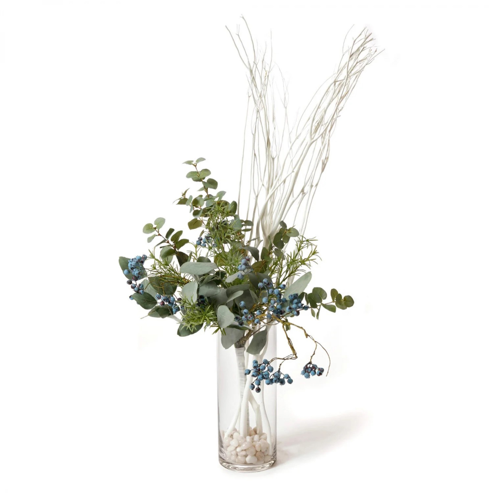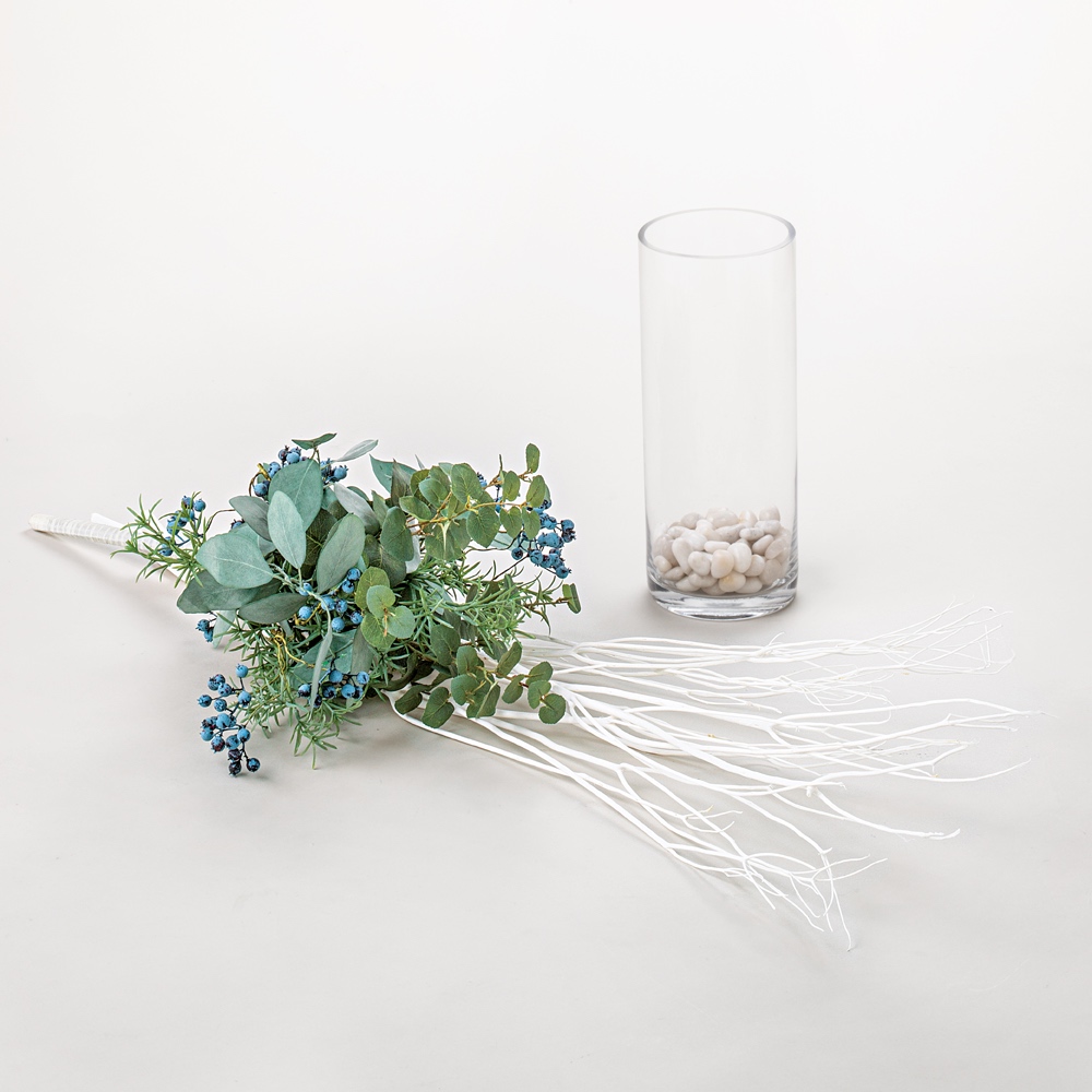ユーカリとミツマタのガラスベースアレンジ アートフラワー 造花 インテリアグリーン G88110