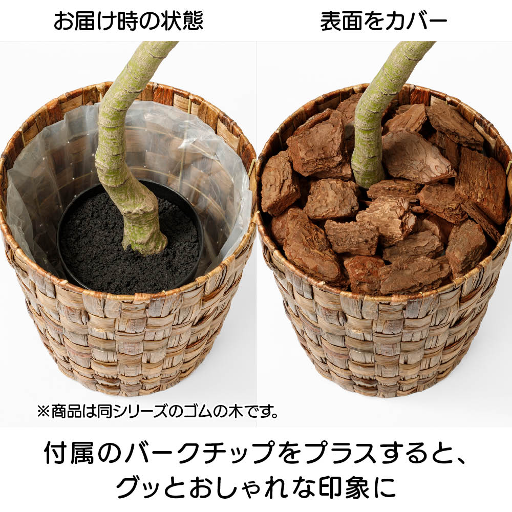 ■素材:植物…ポリエチレン・ポリエチレン酢酸ビニル・鉄芯、バークチップ…天然樹皮、鉢カバー…(ア)天然素材(柳・経木)・(イ)天然素材(ヒヤシンス)