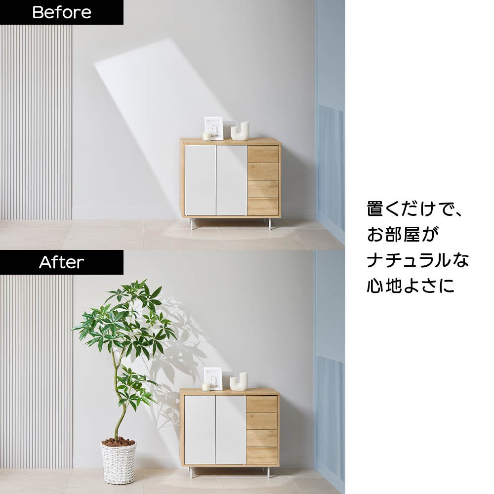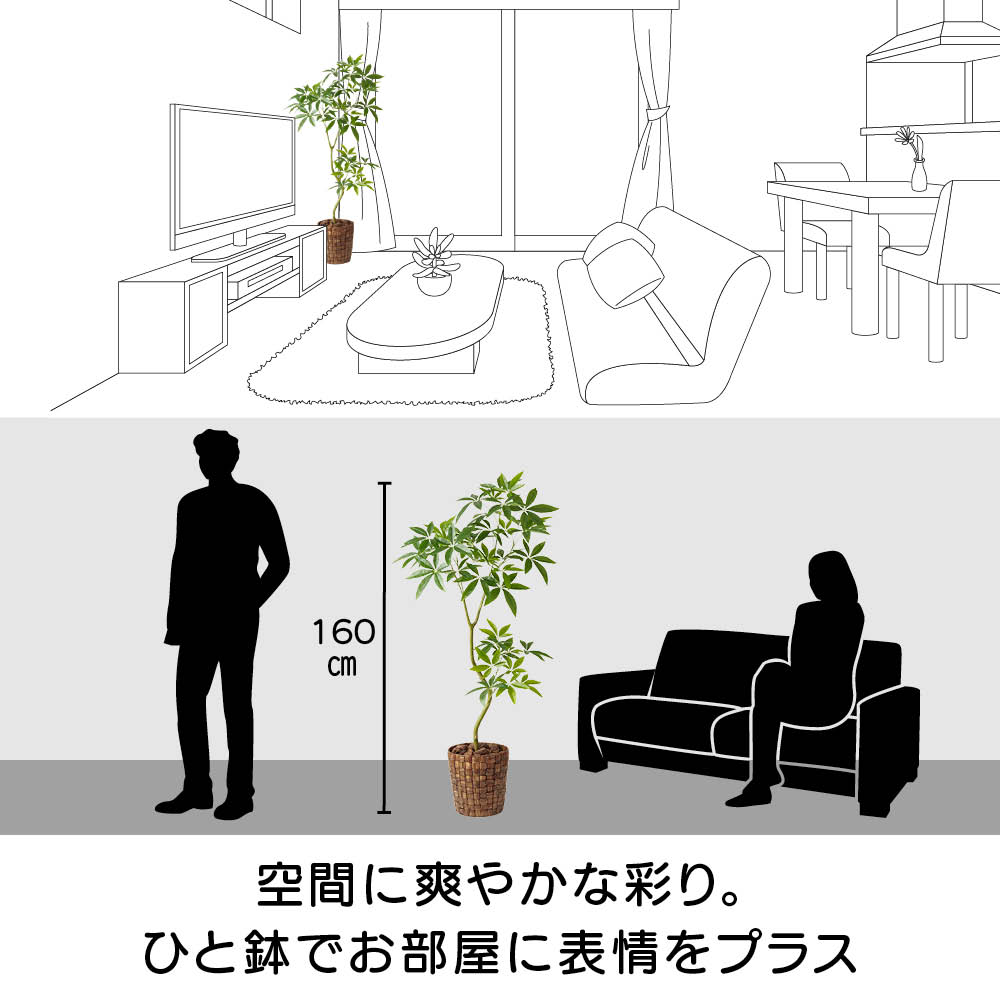 高さ160cmのしなやかな樹形は、やさしく伸びる幹と軽やかな葉が、お部屋に爽やかさを添えます。