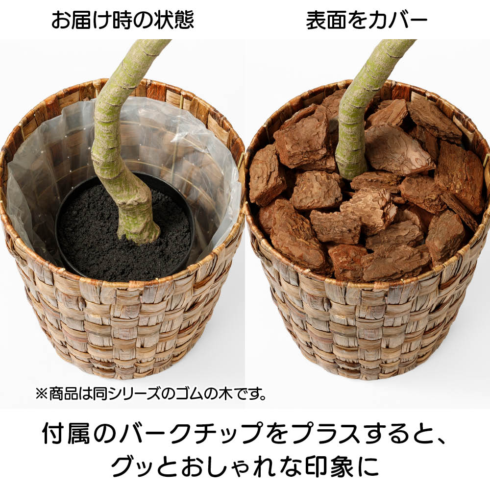 ■素材:植物…ポリエステル・ポリエチレン・鉄芯、バークチップ…天然樹皮、鉢カバー…(ア)天然素材(柳・経木)・(イ)天然素材(ヒヤシンス)