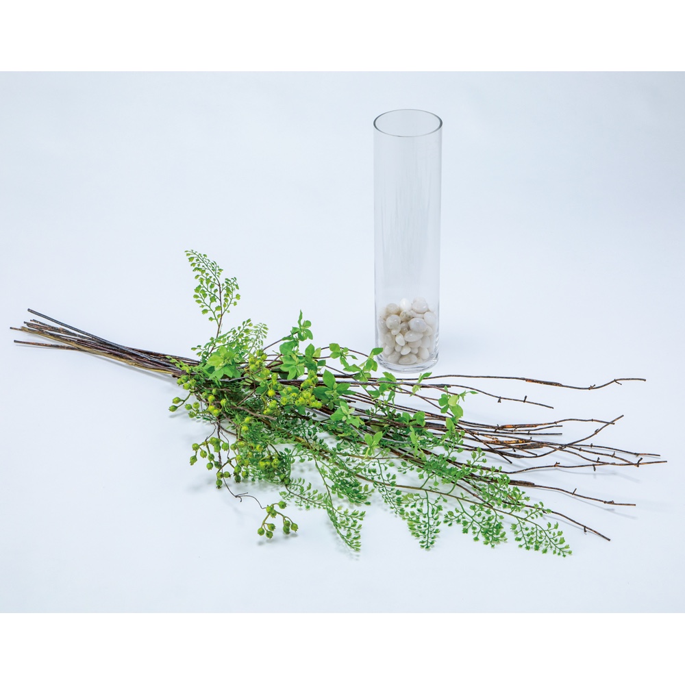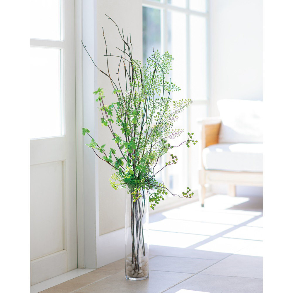 ドウダンツツジのガラスベースアレンジ アートフラワー 造花 インテリアグリーン G88070