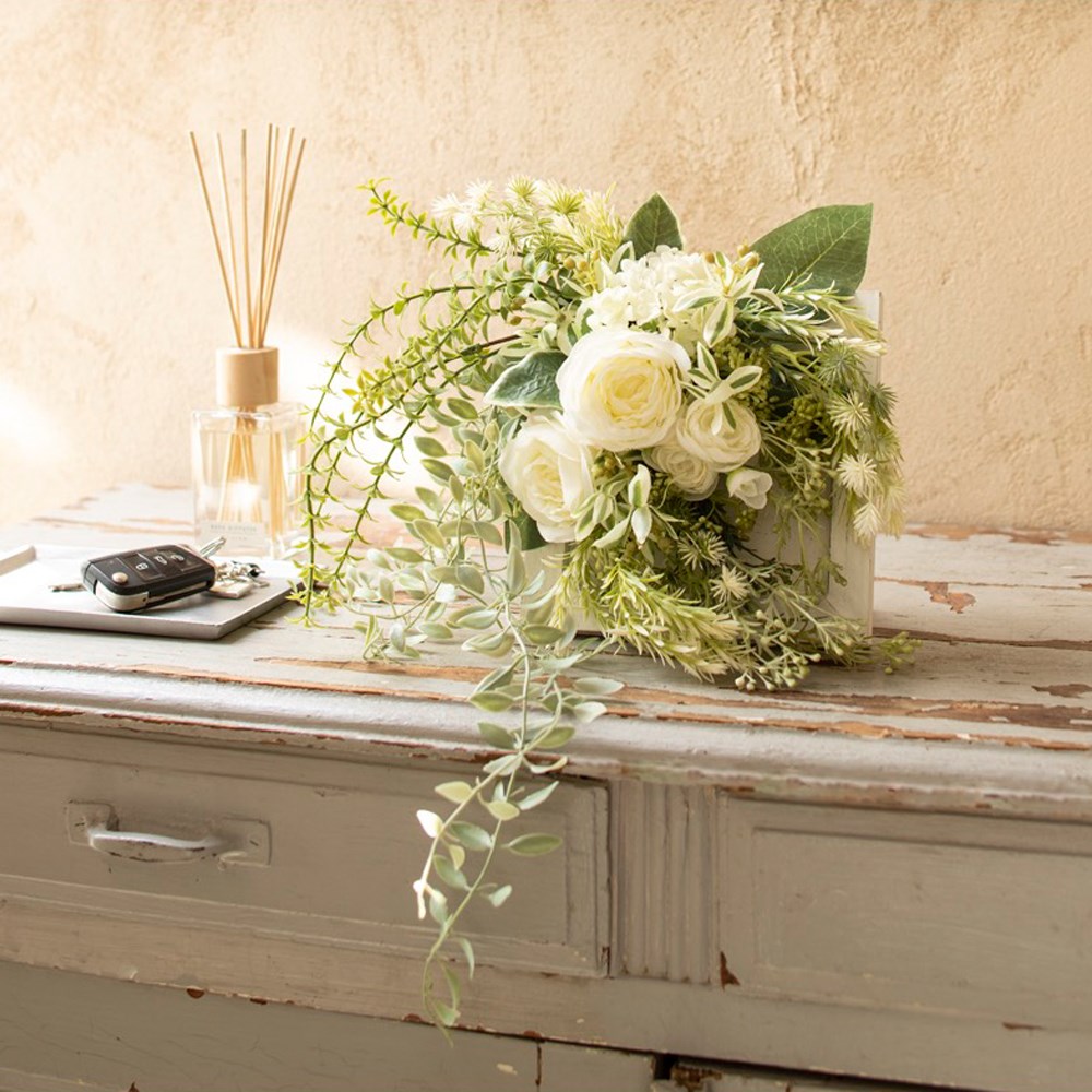 清潔感とボリューム感を両立したアレンジで、掛けても置いても使える便利な2WAYと壁掛けスワッグの2タイプをご用意。