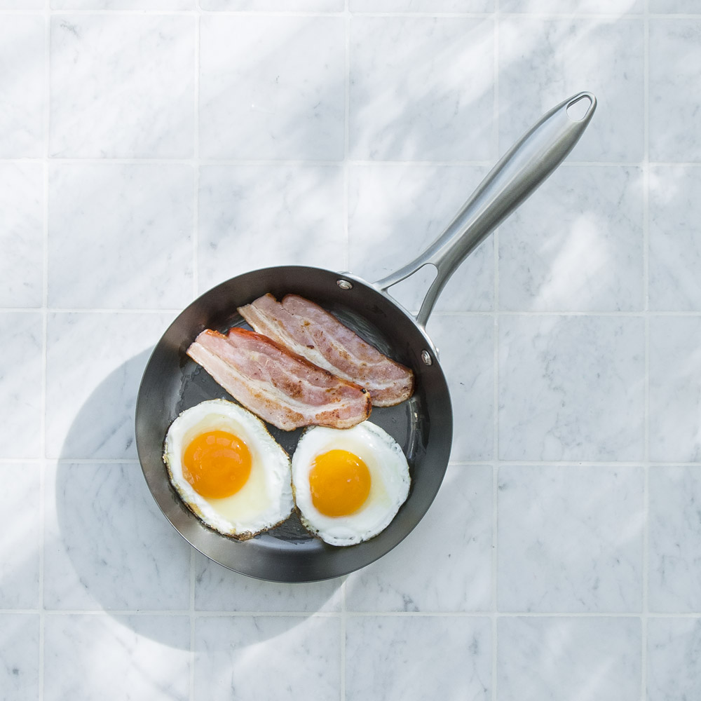 径20cmのフライパンは、朝食などの1人分の軽食料理に最適なサイズで、目玉焼きが2つ焼けます。