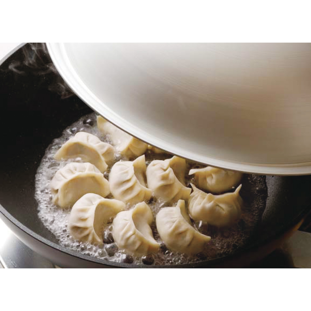 焼き餃子 底が平らなので餃子も重ならず、たくさん焼けます。ステーキも大丈夫!