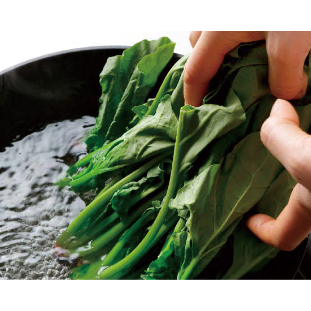 小松菜 たっぷり湯が入るので、かさばる葉野菜の下ゆでもスムーズ。