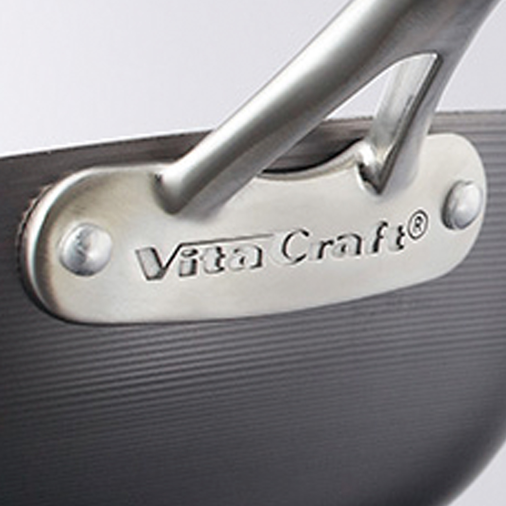1939年にアメリカで創業されたビタクラフト。社名は、ビタミン(ビタ)を逃さない手作り(クラフト)の鍋であることから、その名が付いた。当時、ロケットの部品用に開発された金属同士を接着させた熱伝導の良い金属板を鍋に応用。創業当時から変わらぬ「家族の健康は家庭料理で守っていく」という考えにもとづき、今なお、一つひとつ熟練されたクラフトマンの手により成型、仕上げ、品質チェックが行われ、世界中へと届けられている。商品画像の説明。