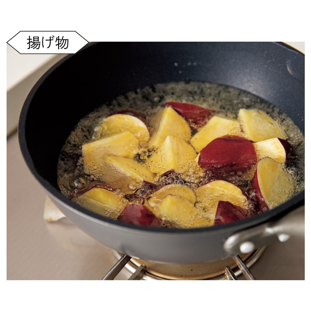 カップ1杯の少ない油でOKなので、揚げ物が手軽にできます。深さがあるので油ハネが少なく安心です。