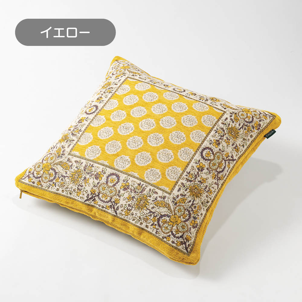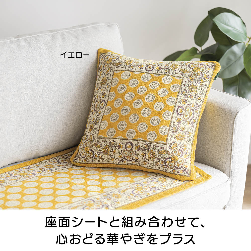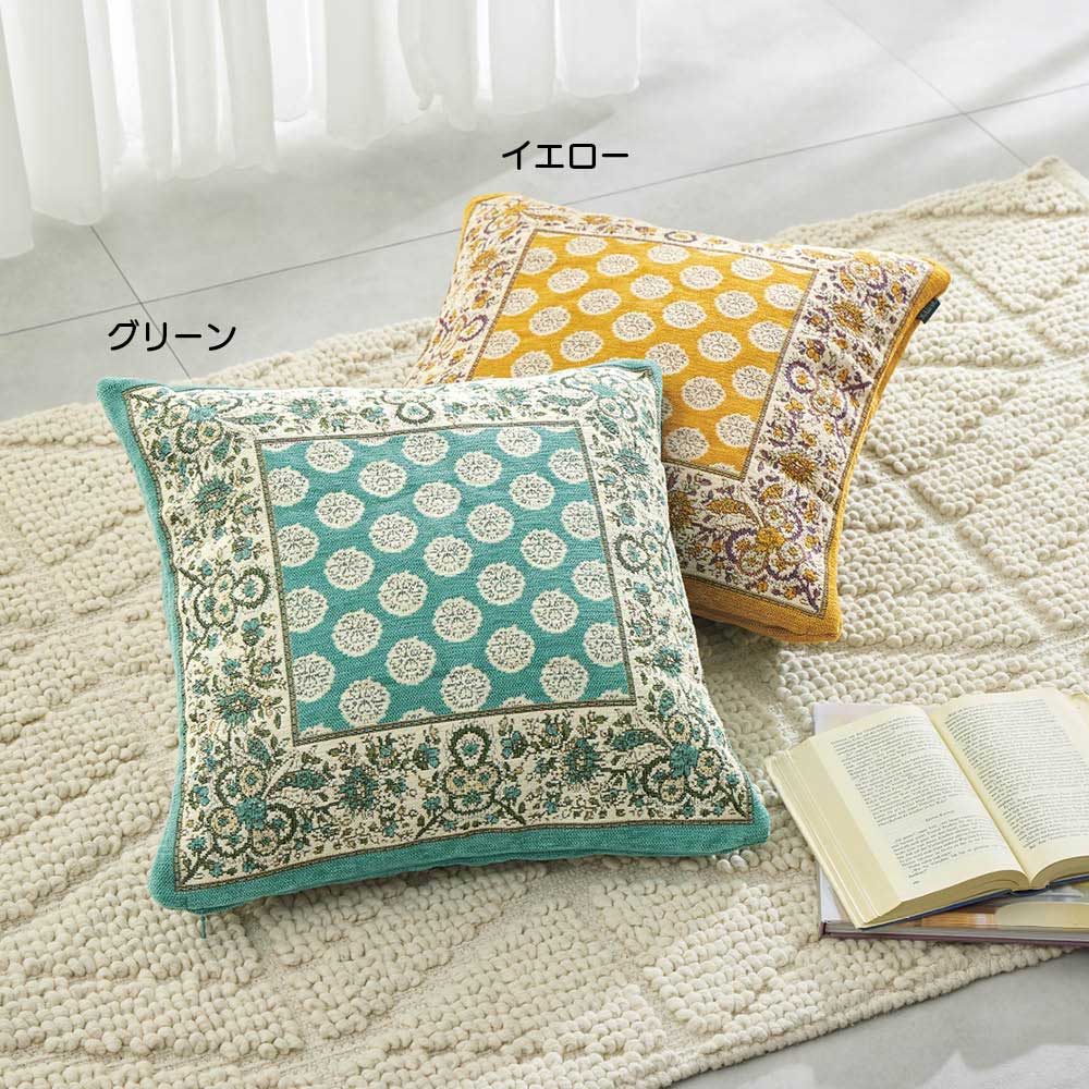 南仏らしいナチュラルかつモダンな草花柄を、立体感のあるジャカード織で繊細に表現。気分まで明るくなる色使いで、お部屋がパッと春めくクッションカバーです。※写真は同シリーズのソファ中掛け 3人用 グリーンとのコーディネートです。
