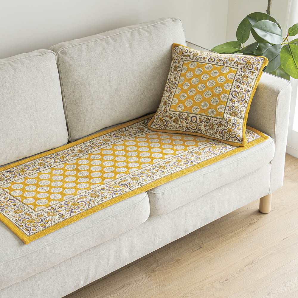 プロヴァンスの太陽を思わせるような、温かみあるイエロー。空間を明るくやさしい雰囲気に。シェニール糸を使ったやわらかくなめらかな起毛素材です。