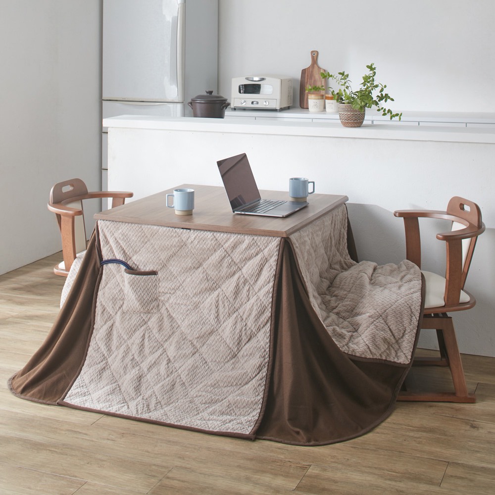 薄掛けなのに暖かいダイニングテーブル用のこたつ掛布団。 コーディネート例 ※お届けはこたつ掛け布団 80×80cm用です。
