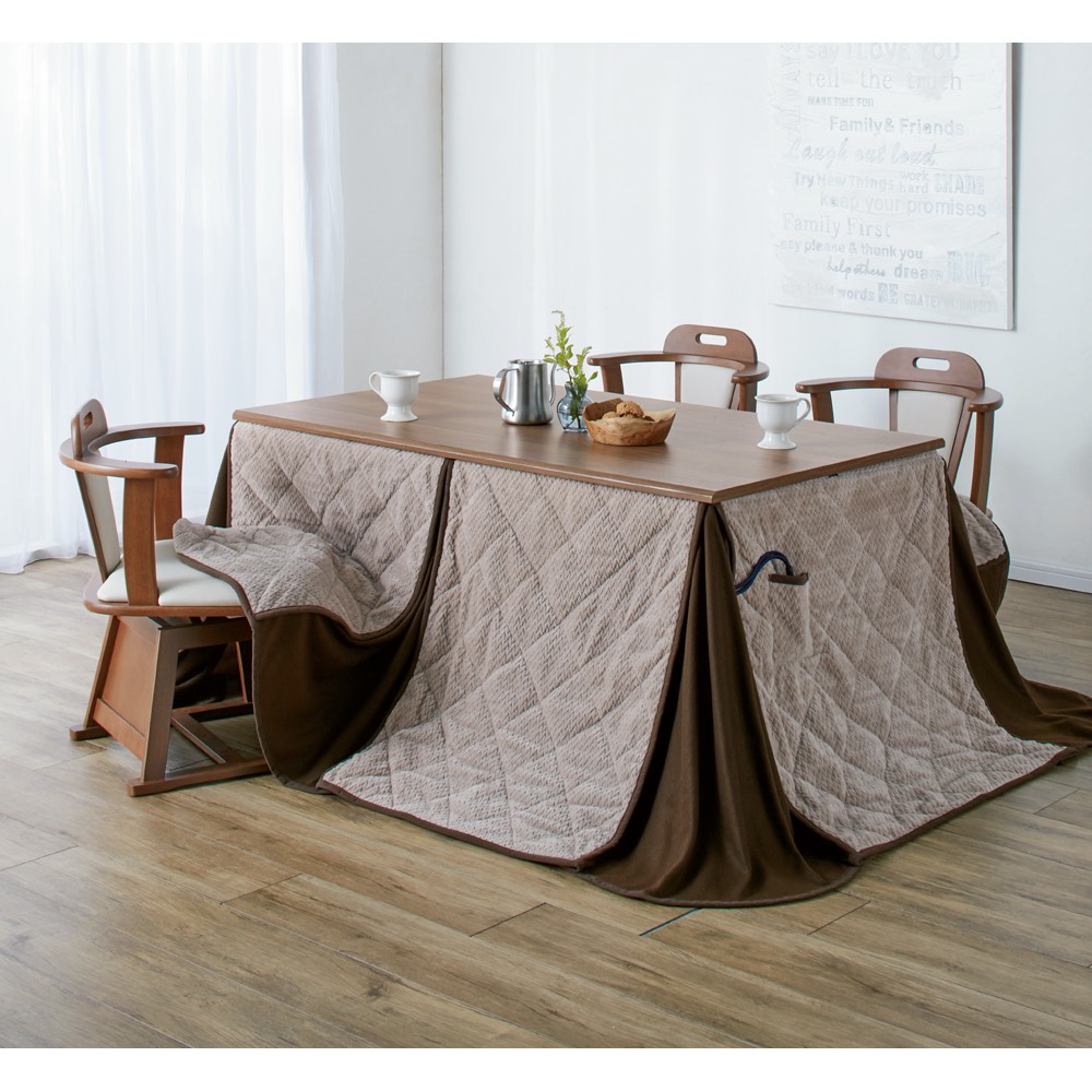 薄掛けなのに暖かいダイニングテーブル用のこたつ掛布団。 コーディネート例 ※お届けはこたつ掛け布団135×80cm用です。