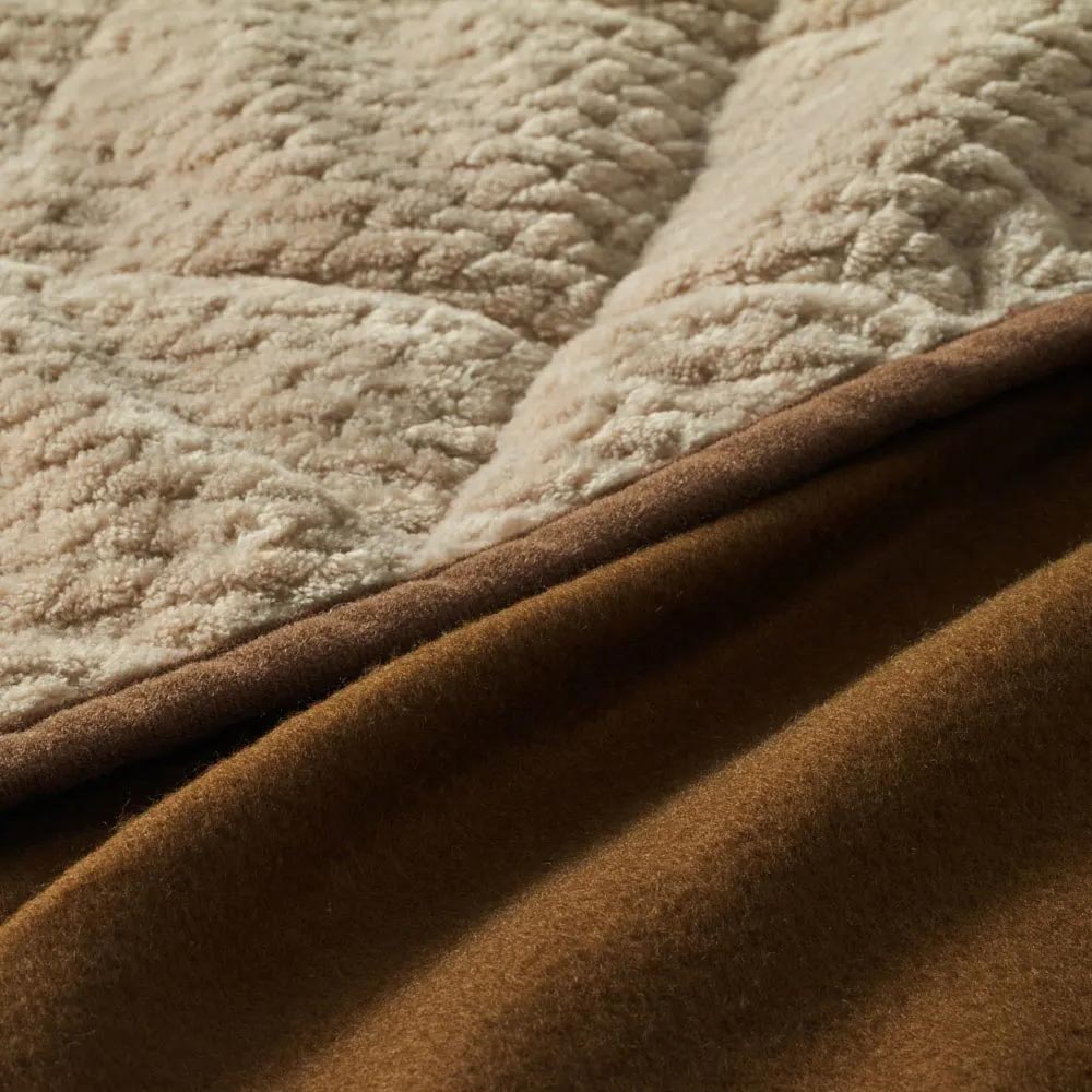 直接肌に触れる裏地はなめらかなフランネル素材を使用し、ふんわりあたたかい掛け心地。