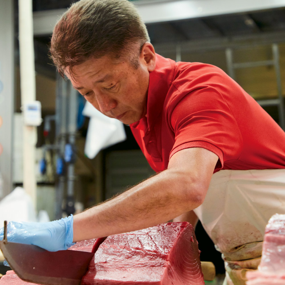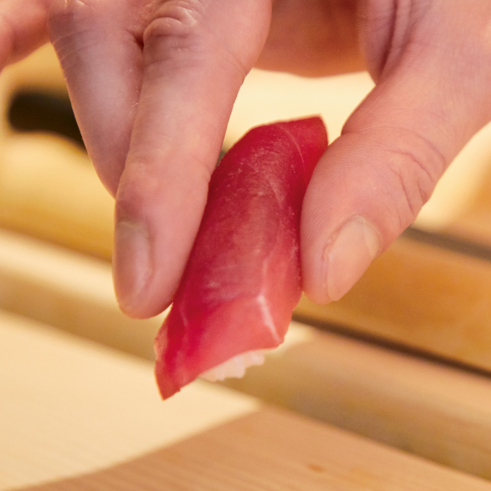 築地と豊洲で60年以上、天然マグロを中心に扱ってきた老舗仲卸「鈴富」が、その「目利き」の力を生かして手がける本格江戸前寿司店。選び抜いたネタの数々を、研鑽を積んだ「腕利き」の技で提供。