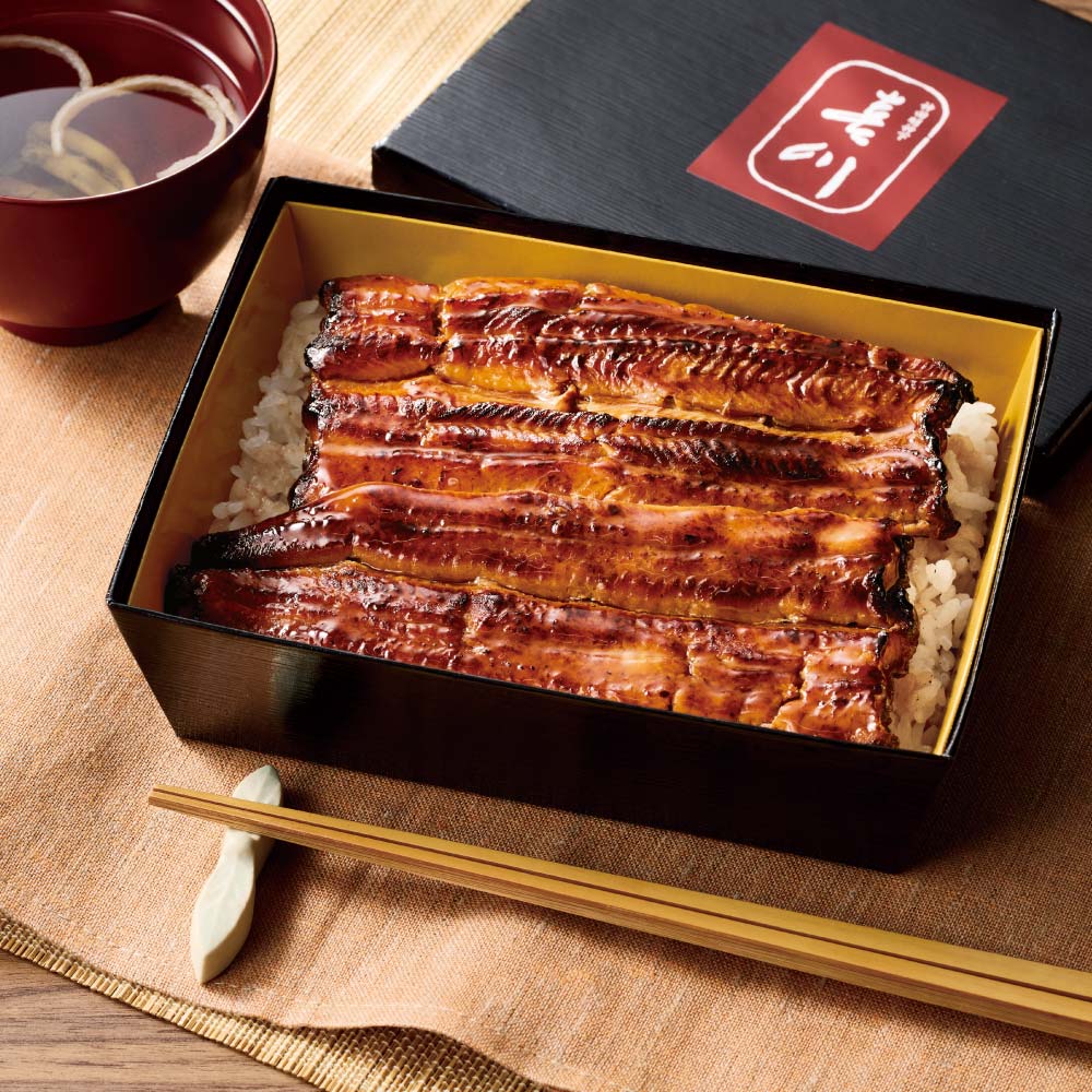 浜名湖のうなぎを使用し、秘伝のたれで仕上げた蒲焼に、ごはんは宮城県産「だて正夢」を使用。肝吸い付きの御膳です。電子レンジで温めるだけで、「喜川」の味をお楽しみいただけます。