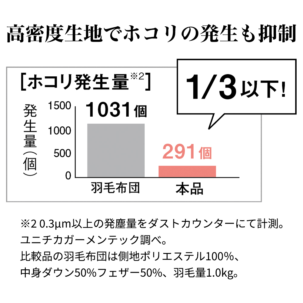 (1)羽毛布団に匹敵する保温性(2)軽くやわらかく暖かい掛け心地