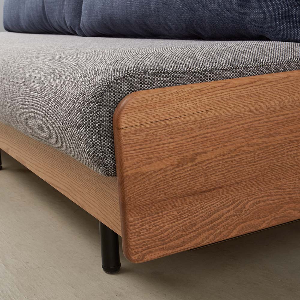 サイドのパネルには上質なオーク無垢材を贅沢に使用しました。無垢材ならではの、経年変化を楽しみながら長くお使いいただけます。