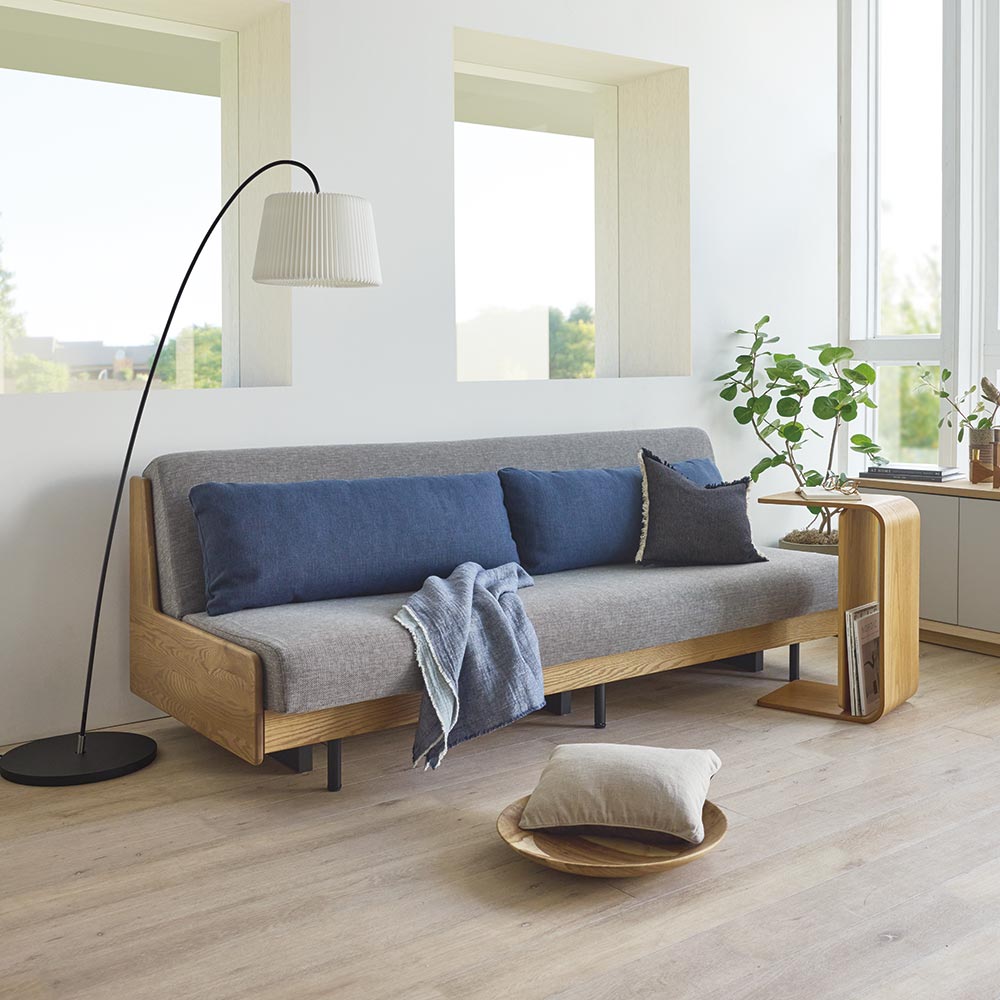 座面をスライドさせるだけで、ソファベッドへチェンジ
