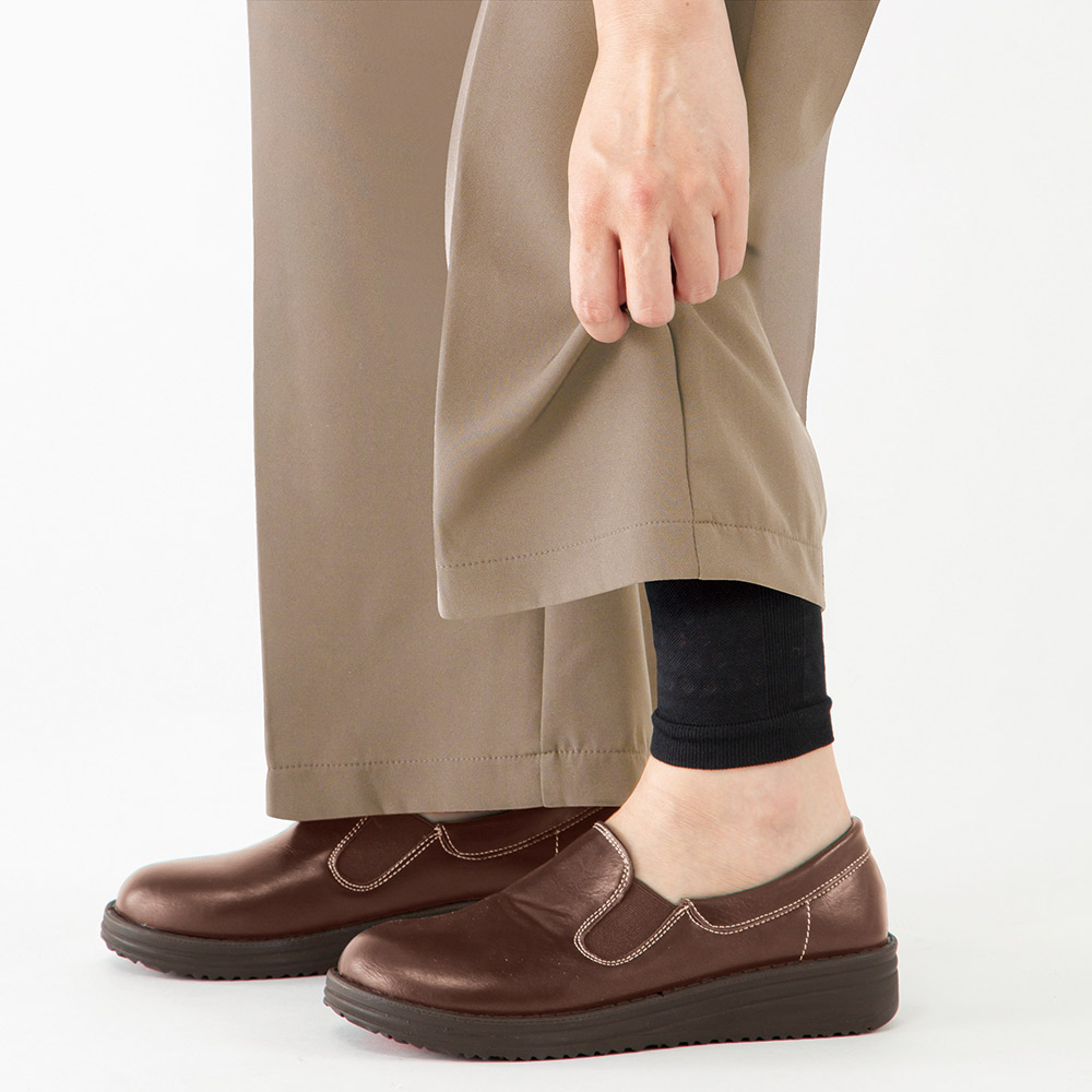冷えが気になる足元をあたため、頑張った足をサポートしましょう。薄手なので、パンツスタイルの下に履いてもスッキリ。