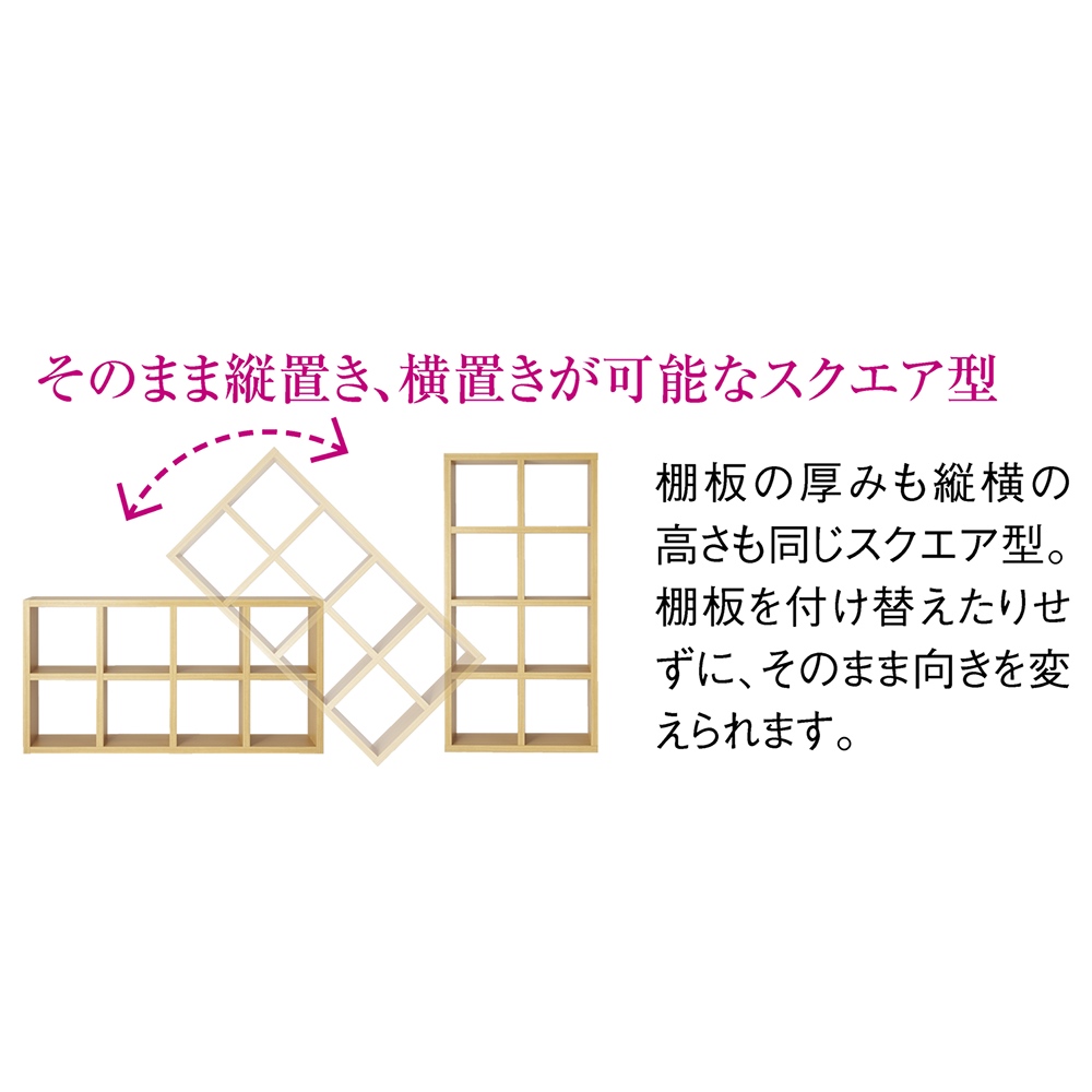おしゃれなディスプレイが可能なスクエアシェルフ。縦横の置き方も自由。