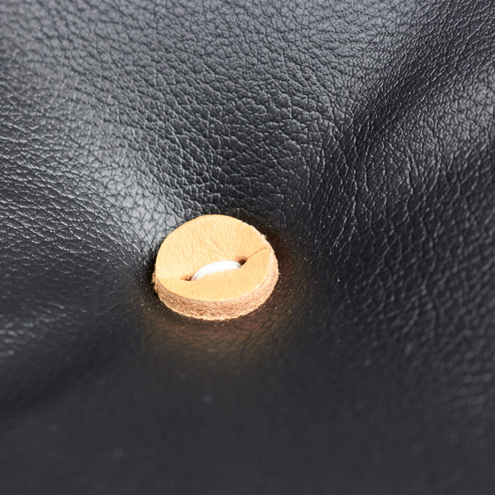 • 船長の着るピーコートのレザーボタンを意識したヌメ革ボタンがアクセント。
