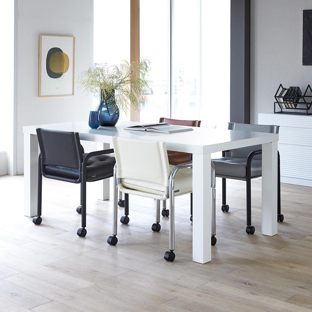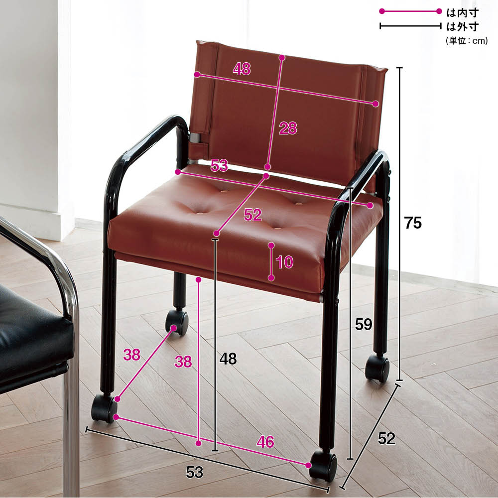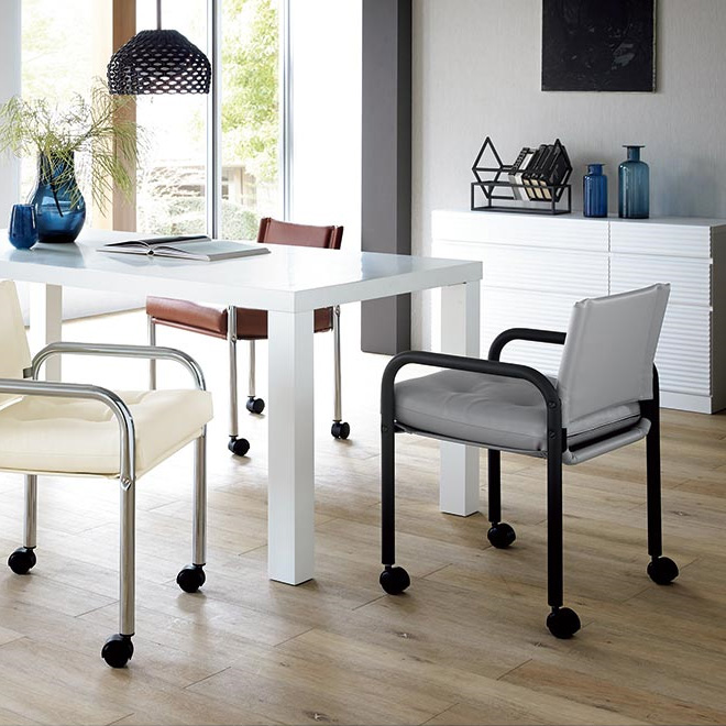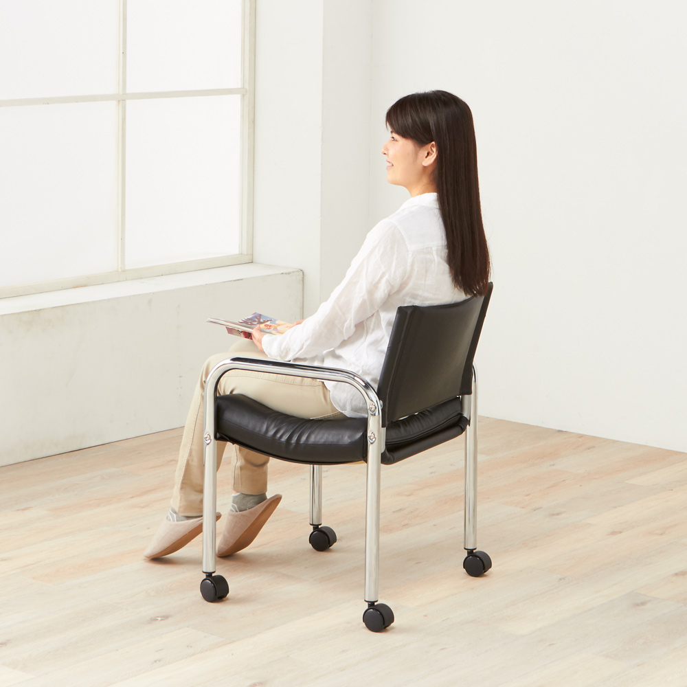 • キャスター付きでオフィス用にもおすすめ。軽い力で移動でき、立ち座りも快適です。