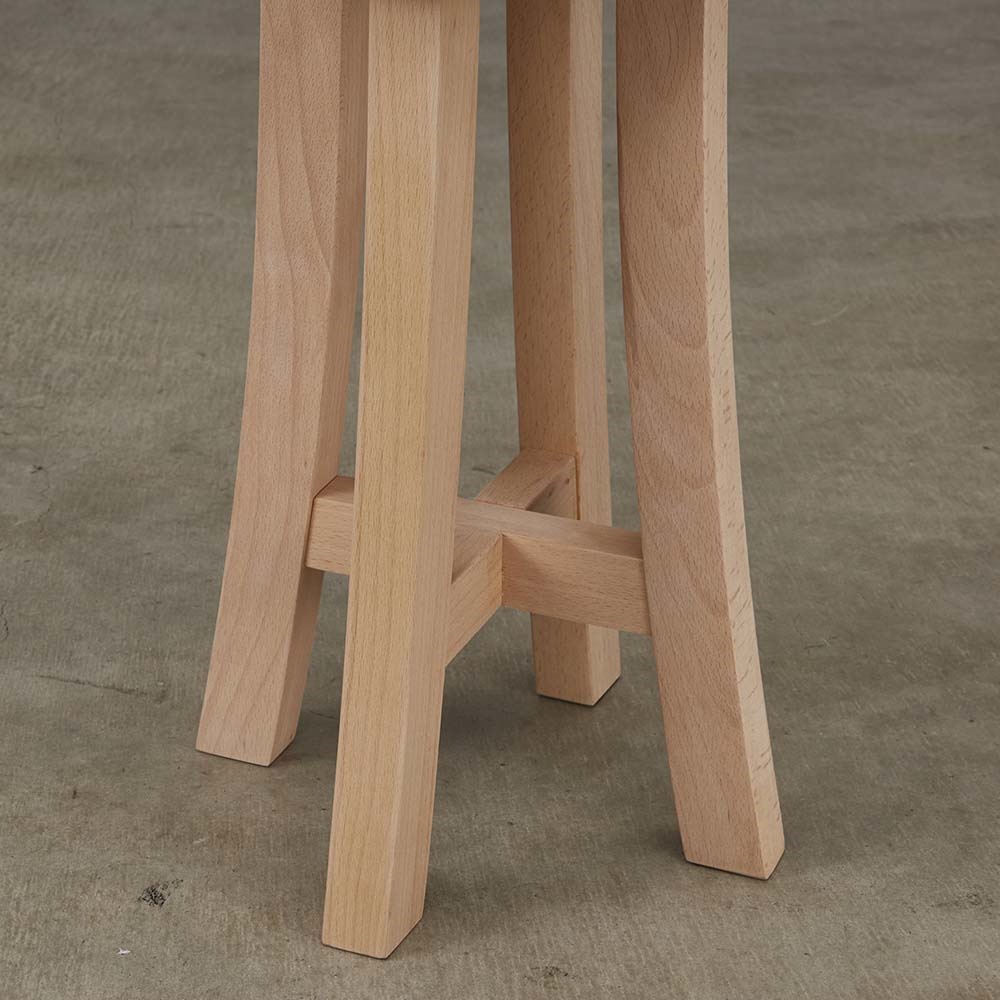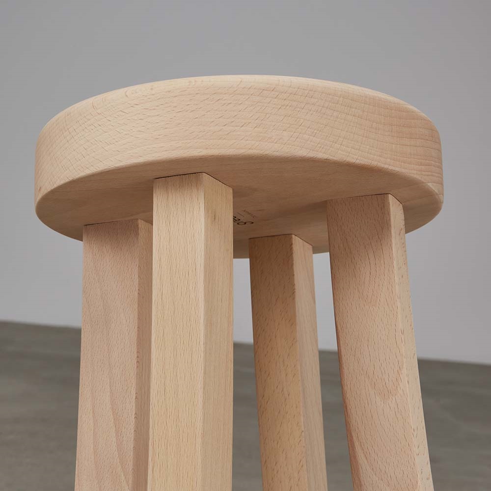 岡山県の山間の納屋で作られたことから名付けられたナヤスツールは、1974年に小松勲氏の手から生み出されました。小松氏が木彫りの備中神楽面の制作の際に作業用の椅子として使ったものです。小学校教員の定年を機に、生来の手先の器用さを活かして、備中神楽面という難しい木彫り面の制作を26年に渡り続けました。小松氏の作る備中神楽面は、五穀豊穣を祈る神事から生まれたもので、この地方では家内内安全、家運隆盛を願って、伝統的に家の玄関に置かれてきました。ナヤスツールは、20年以上もの間忘れられたまま納屋の二階に置かれていましたが、2020年に神楽面用の材木の中から発見されました。greenholt