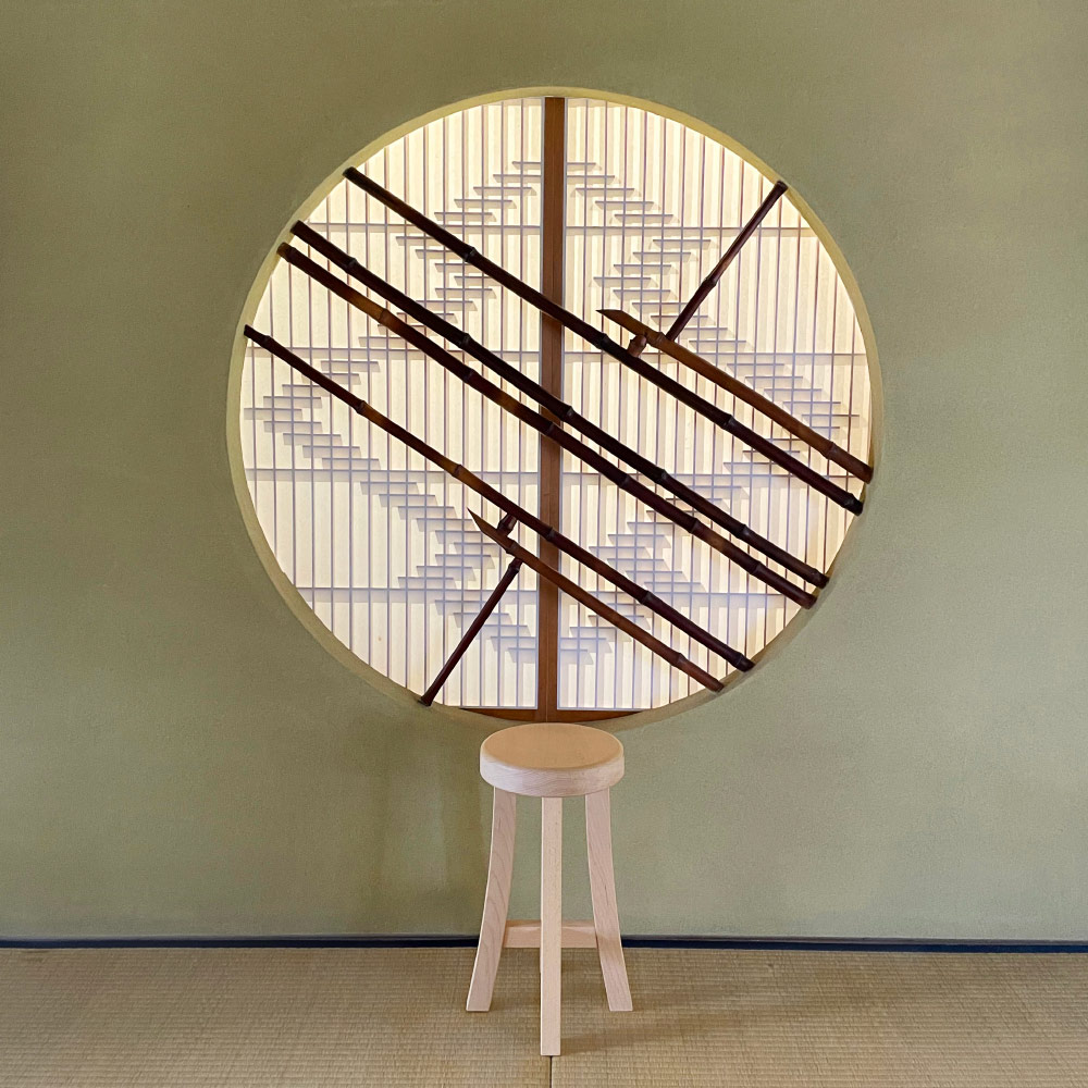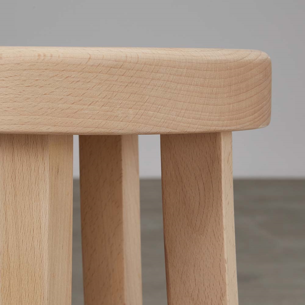 岡山県の山間の納屋で作られたことから名付けられたナヤスツールは、1974年に小松勲氏の手から生み出されました。小松氏が木彫りの備中神楽面の制作の際に作業用の椅子として使ったものです。小学校教員の定年を機に、生来の手先の器用さを活かして、備中神楽面という難しい木彫り面の制作を26年に渡り続けました。小松氏の作る備中神楽面は、五穀豊穣を祈る神事から生まれたもので、この地方では家内内安全、家運隆盛を願って、伝統的に家の玄関に置かれてきました。ナヤスツールは、20年以上もの間忘れられたまま納屋の二階に置かれていましたが、2020年に神楽面用の材木の中から発見されました。greenholt