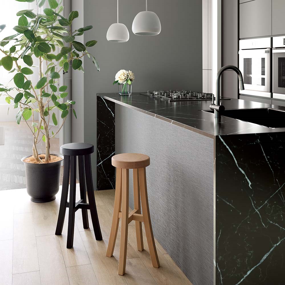 • コーディネート例 ※左から ブラック、ナチュラル ラージはハイスツール。キッチンカウンターにぴったり。