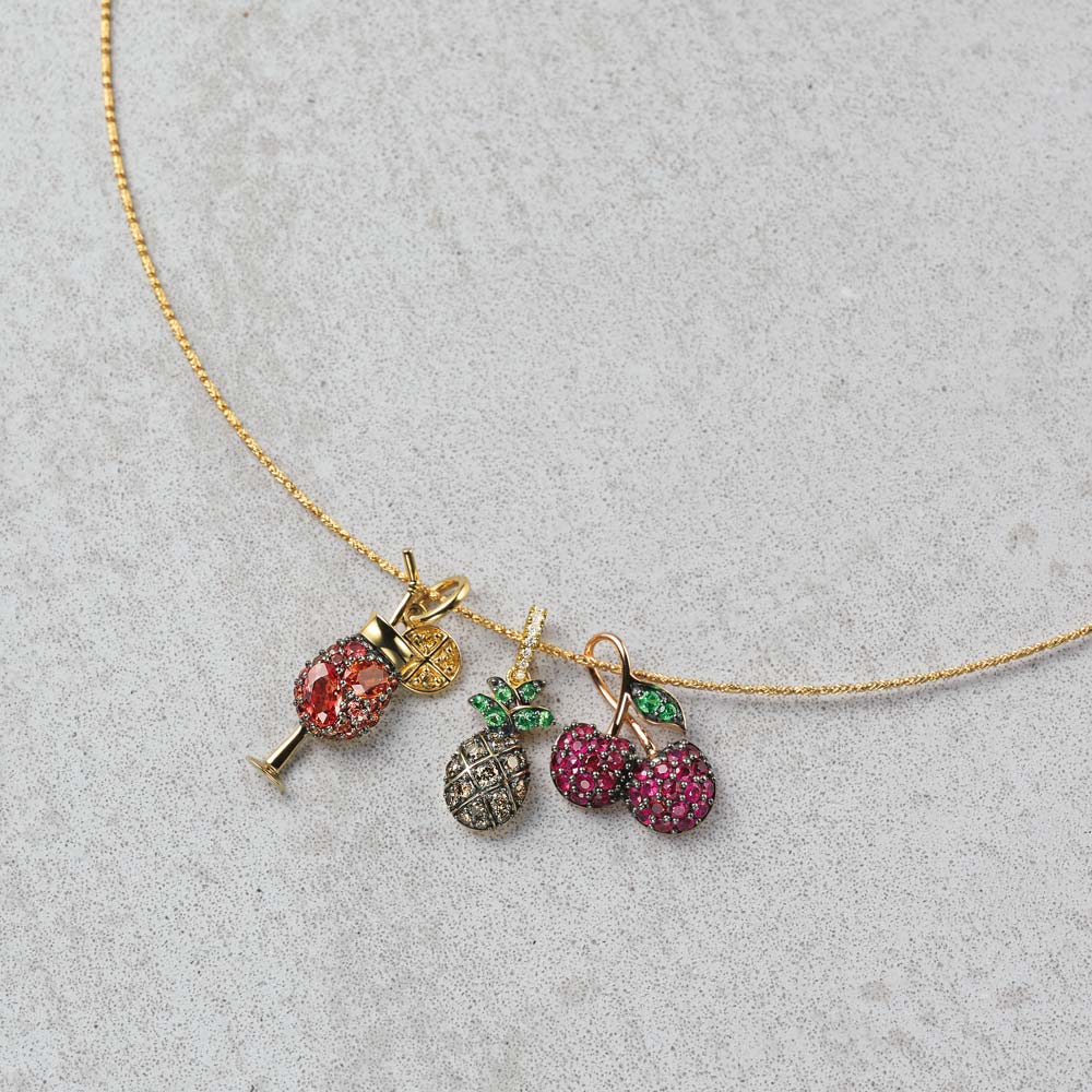 K18 ダイヤ・色石パイナップル ペンダントヘッド ダイヤモンド ジュエリー アクセサリー J78709