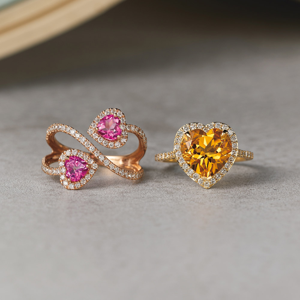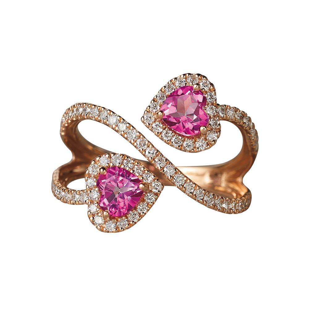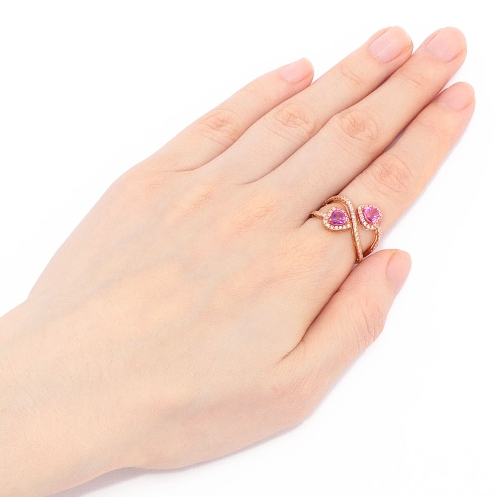 K18 カラーストーン・ダイヤ ダブルハートリング ダイヤモンド ジュエリー アクセサリー J78802