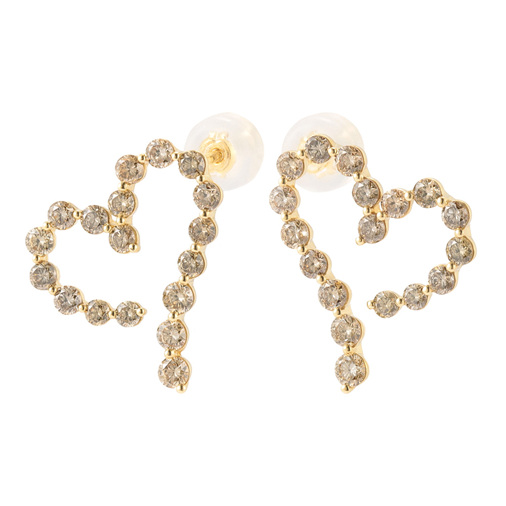 K18 1.3ctブラウンダイヤ ハートピアス ダイヤモンド ジュエリー アクセサリー J78806