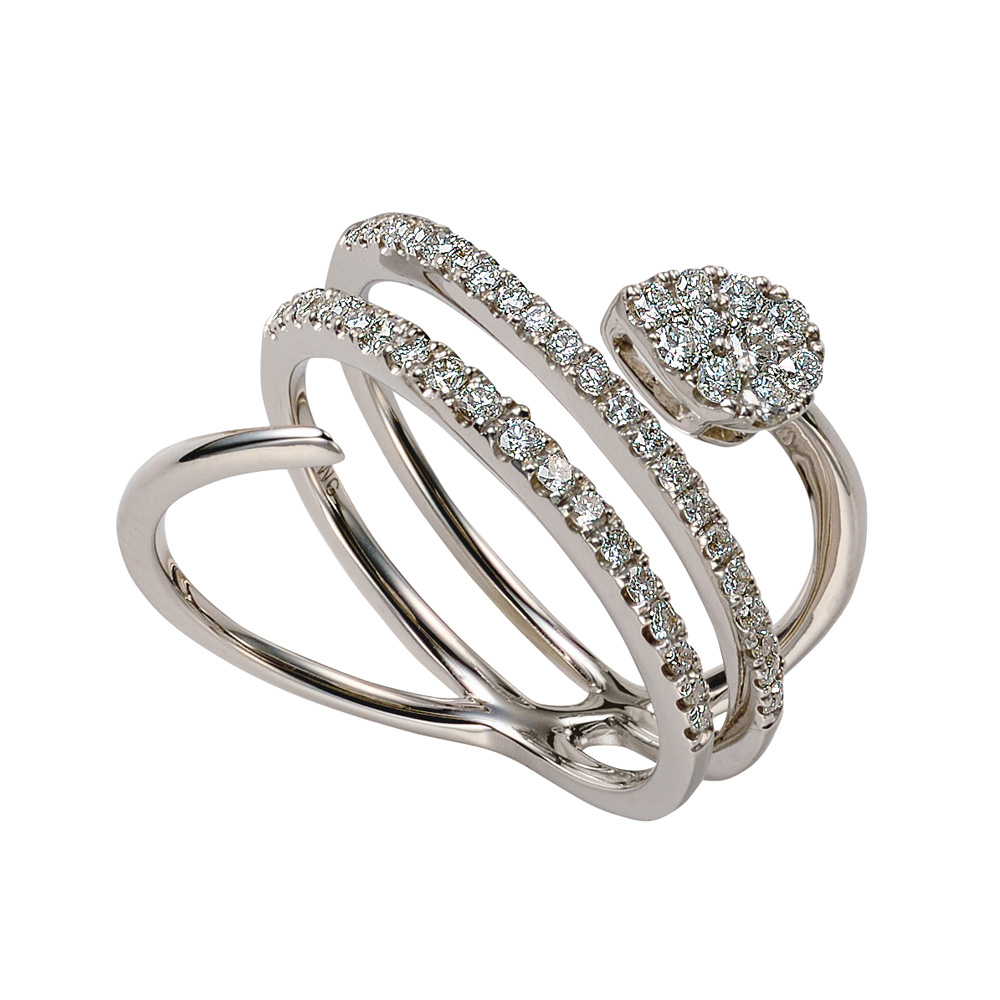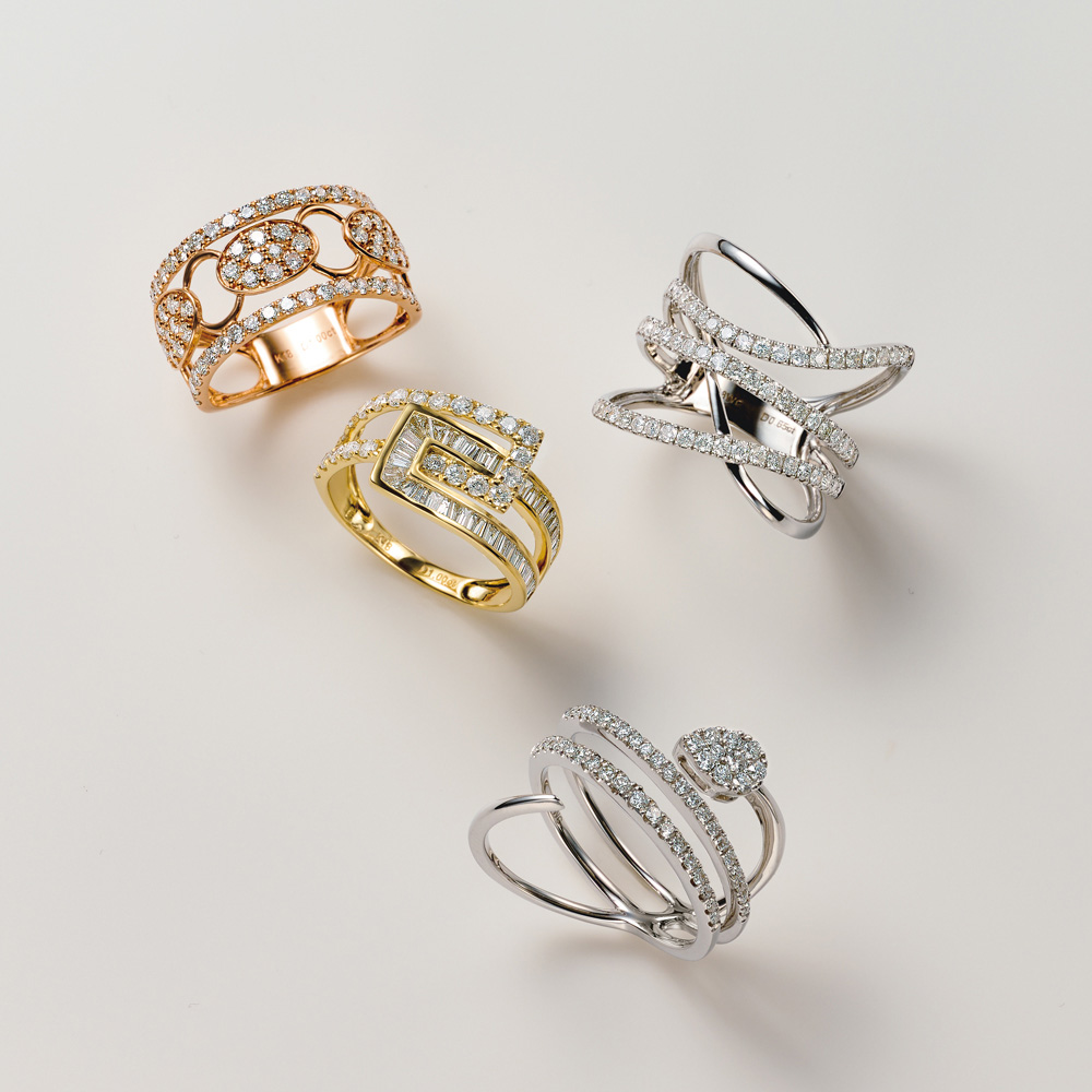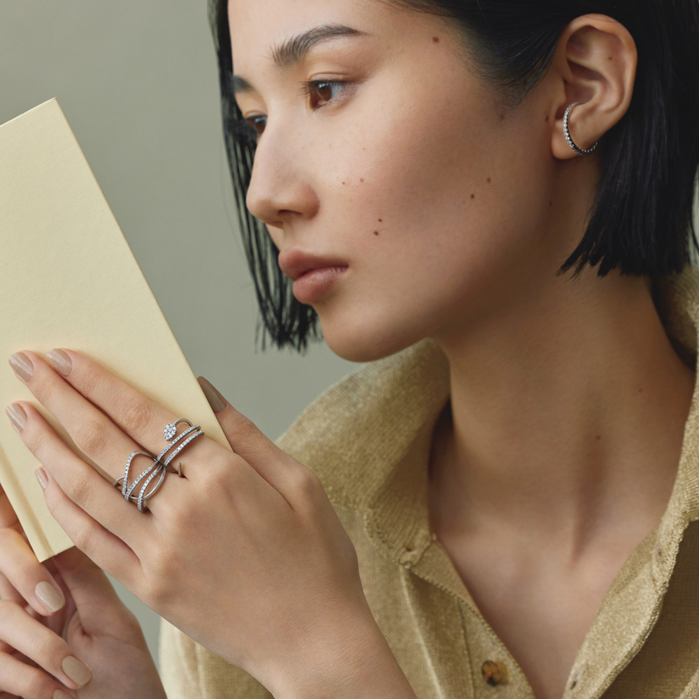 自分を楽しませながら個性を演出してくれる…それが、日常に愛用するジュエリーのあり方です。迫力と応用性を備えた最旬アイテムをピックアップ!大ぶりのダイヤリングは透け感で遊ぶのが、今の気分