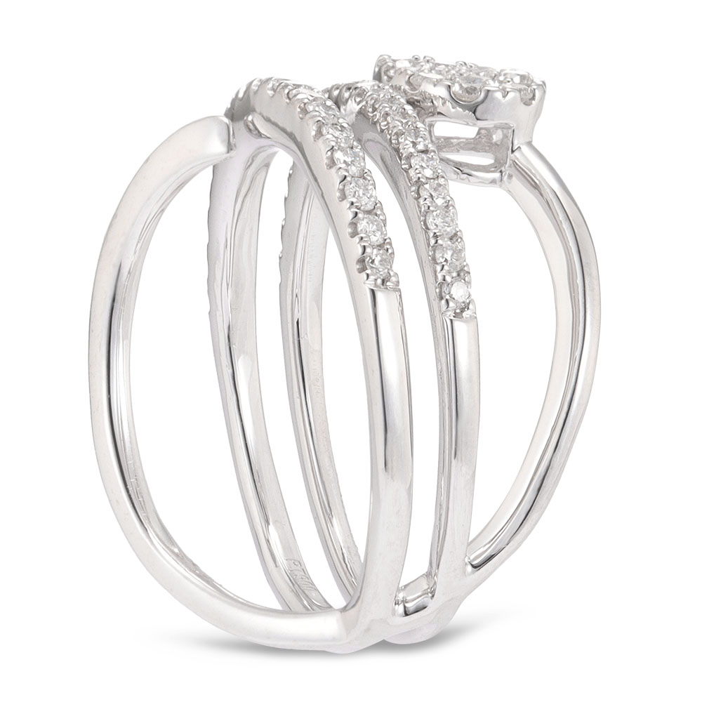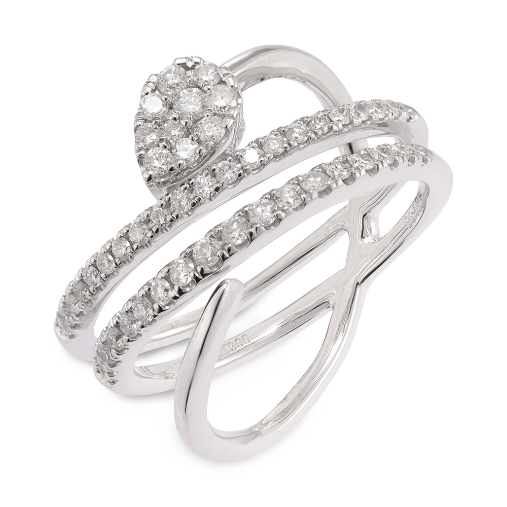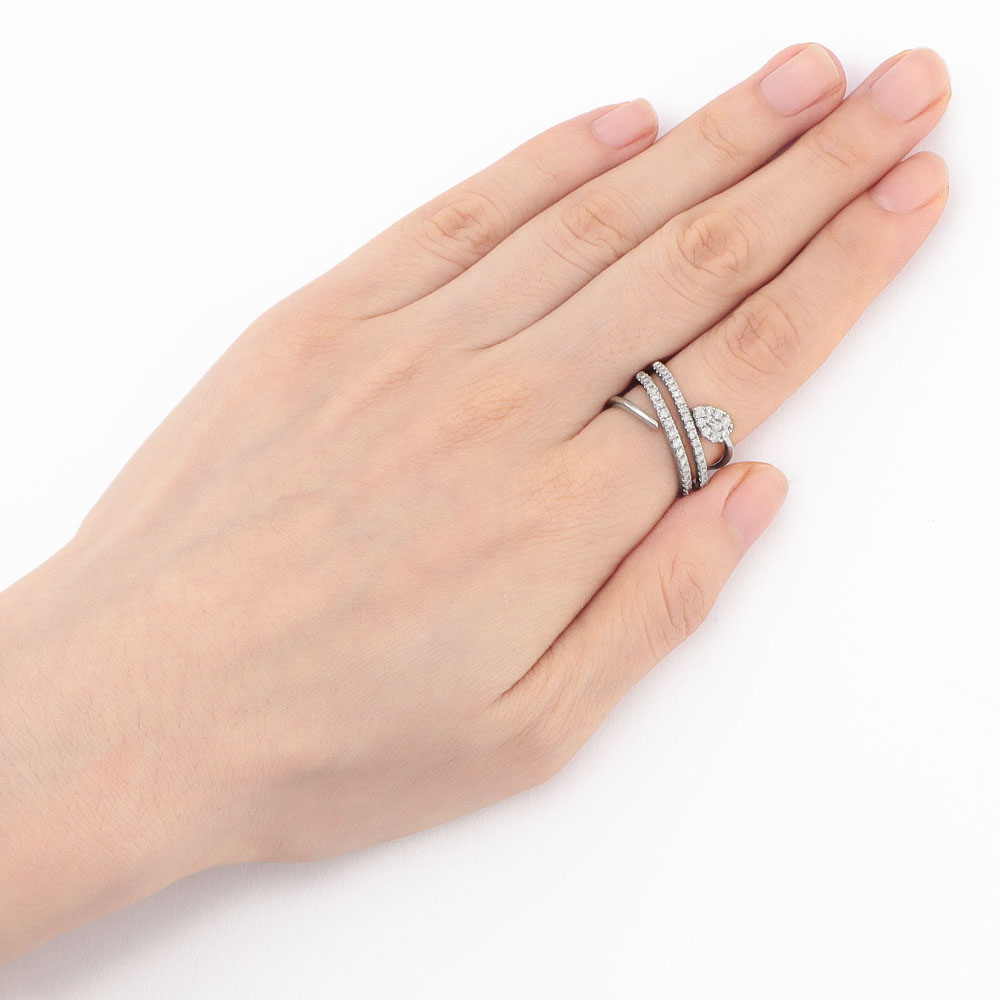ダイヤを敷き詰めたラインがしなやかに指に巻き付くスネークモチーフのスパイラルリング。商品画像の説明