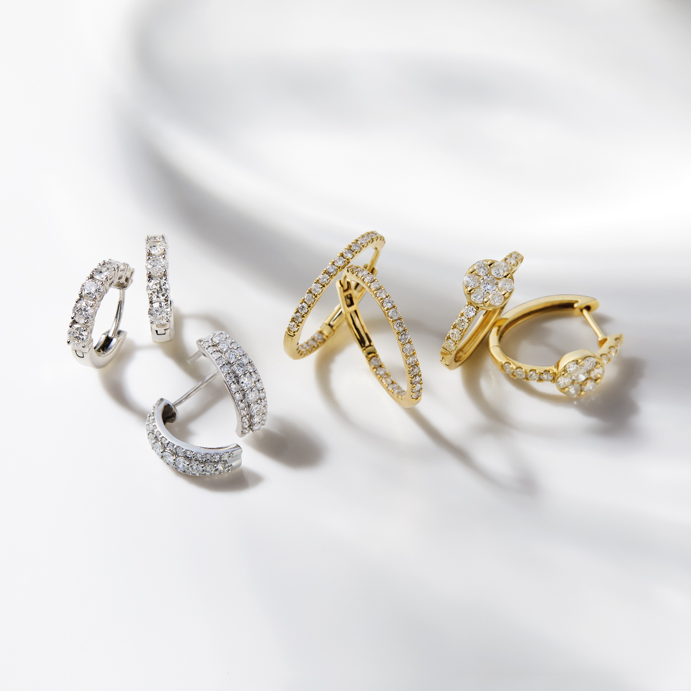 崇高な光をたたえたダイヤフープピアス。この輝きとなら、いつも一緒にいられる