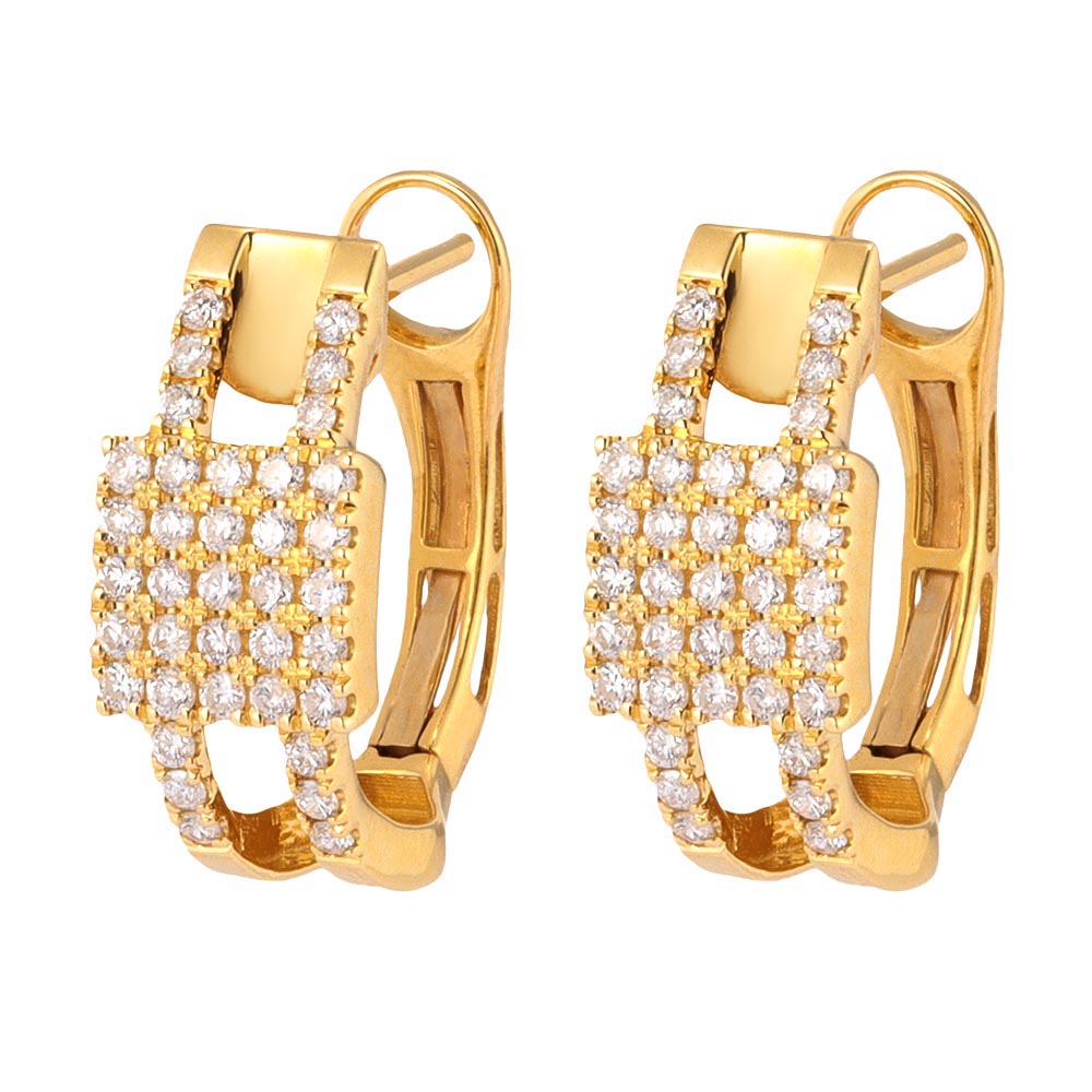 ラインの中央にスクエアシェイプのパヴェダイヤが輝くスタイリッシュピアス。