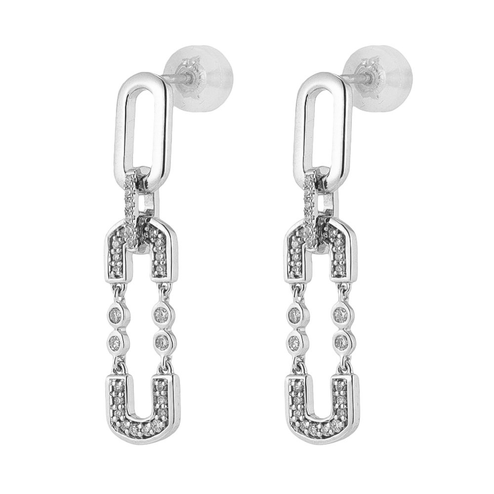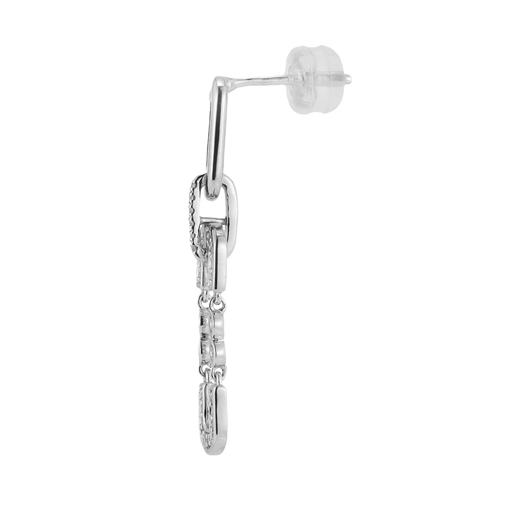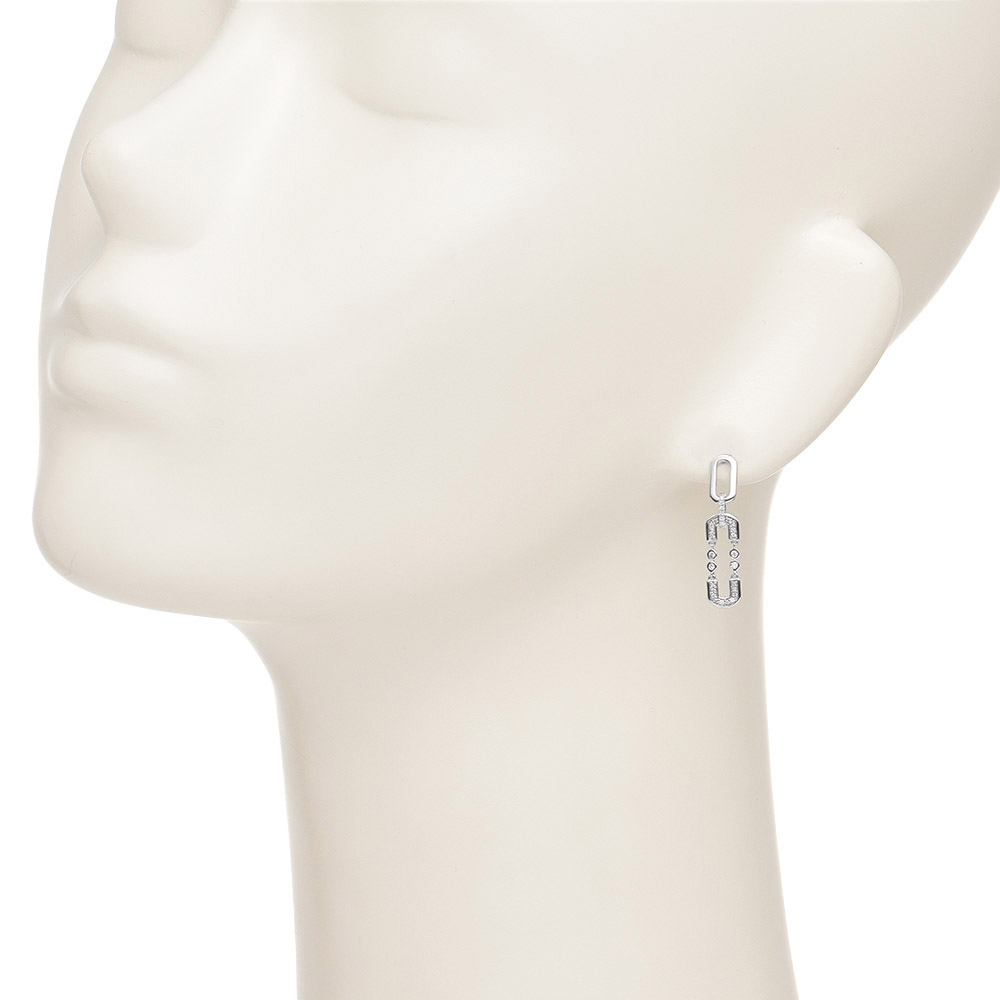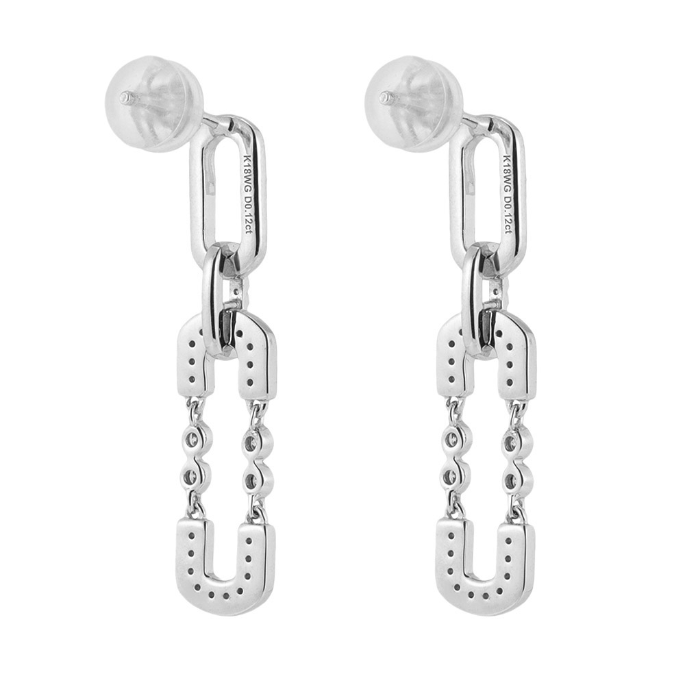 人気のクリップモチーフにダイヤを配したモダンピアス。商品画像の説明