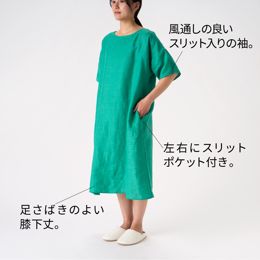 LINEN & BASIC 着て涼むやわらかリネン100%ルームウェア ワンピース 560307