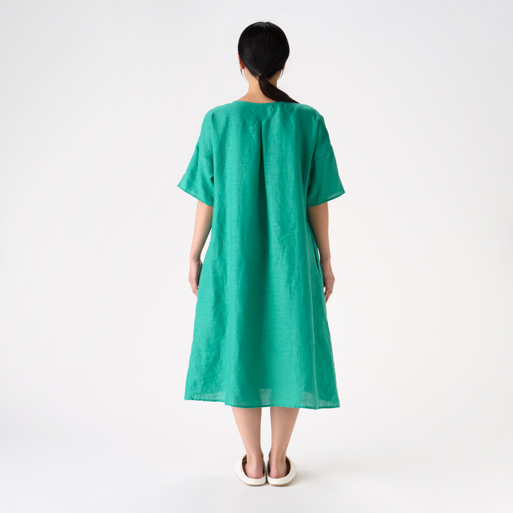 (ア)グリーン 夏の暮らし心地をUPしてくれる、リネン100%のワンピース。