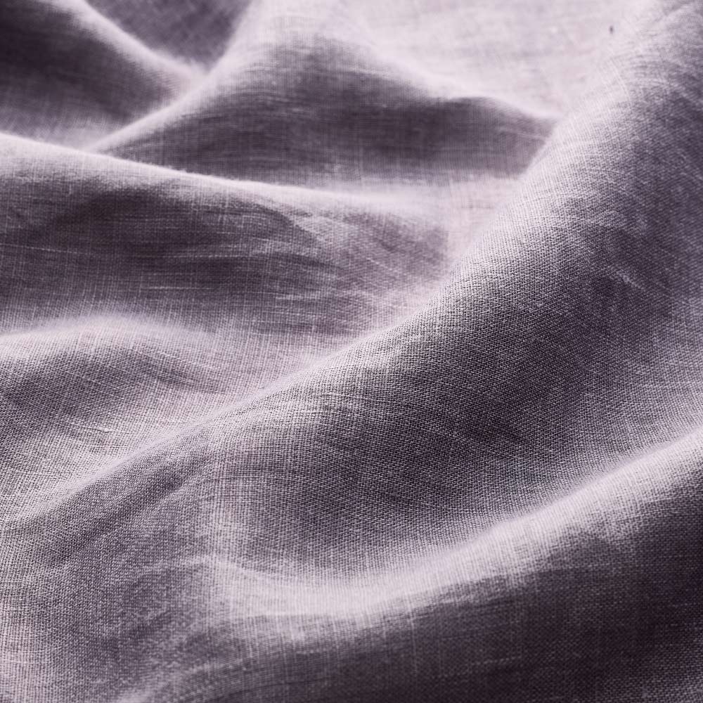 上質なリネン素材を使い、細番手の糸で織り上げた生地は「リネン=硬くてゴワゴワする」、というイメージをくつがえすとびきりのやわらかさ。日本国内で染色したニュアンスのあるカラーも魅力です。グリーンとグレイッシュパープルの2配色。